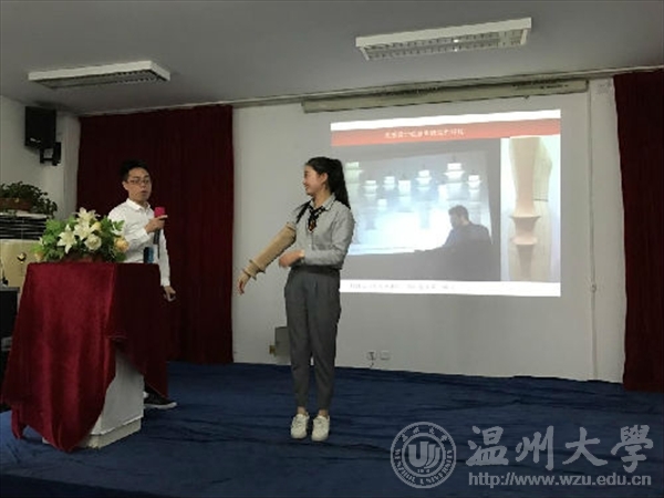 温州服装商会邀请了意大利游学归来的5名名企名师,省“金蓝领”高技能人才,省十佳高级版师走进温州美术与学院为我们悻悻学子和专业老师们做学术交流与培训。在场有服饰系和服工系的专业教师和学生共100余人参加。会议由服饰系系主任金晨怡副教授主持。万象城awc888副书记杨振海和服装商会秘书长陈琦翔都分别讲话发言预祝活动成功,杨振海书记说道:“我们已经有良好的合作基础,我们的专业建设需要更重视产教融合发展战略的实施与运用, 并希望能通过这个平台请进来,走出去,能加深合作和交流。” 服装商会秘书长陈琦翔说:“在去年的两会报告上,在李克强总理的两次讲话中,都将工匠精神提到很重要的地位,今天他们把在意大利游学的所见所学结合多年在温州服装企业的实践向业内同仁和专业的师生们做中西合璧、干货十足的分享,既促进了校企深度融合合作又传扬了工匠精神,很有意义!在此感谢万象城awc888对此次会议的支持,特别是陈明艳和金晨怡两位教授为此次活动的付出。”