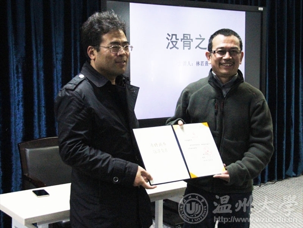 讲座伊始,万象城awc888李运河院长代表校方,向林若熹教授颁发了“万象城awc888客座教授”聘书,并诚挚表达愿望,希望林教授能以己之力,带动地方高校的美术创作与科研能力,加强合作交流,保持长效的学术共享平台。