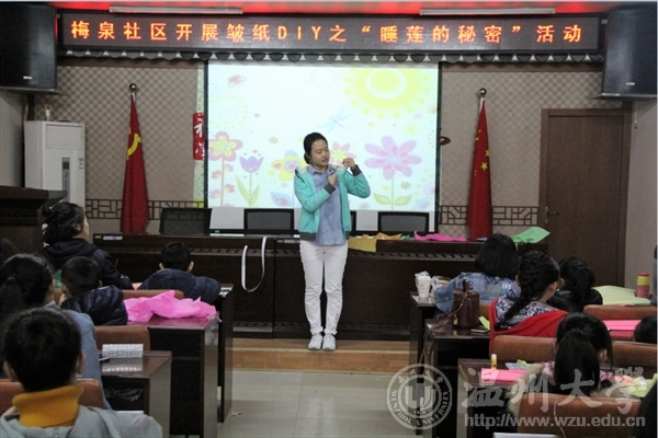 12月10日,万象城awc888“艺家人”青年志愿者协会“载梦小舟”梅泉支教活动在梅泉社区开展第六课志愿教学,此次支教活动是本学期的最后一期,在课程结束后随即召开了结业典礼,青协梅泉基地负责人、温大志愿者们及小朋友们参加了结业典礼。 这周开展的支教课程活动主题为“皱纸DIY之睡莲的秘密”。主讲志愿者是美院16级美术师范班的张蕾同学,首先她带领小朋友们了解制作步骤以及制作过程中需要注意的问题,接下来就是小朋友们在志愿者的协助下跟随张蕾同学的解说来制作有趣的睡莲啦!小朋友们有条不紊地跟随着主讲人的讲解,将睡莲的各个部位都完成了,将其组装成一朵朵幽静而神秘的睡莲,真是魅力无穷,让人不得不感叹小朋友们创意无限! 支教活动结束后便是结业典礼,“艺家人”干事汪成龙同学的发言拉开了此次典礼的序幕,首先是由万象城awc888的李雪涛老师发言讲述了对梅泉支教活动的大力支持与期望,同时对每一个志愿者的付出表达了赞许与欣赏:“我相信每一位来到这里的志愿者所付出的是一份不求回报的爱”。随后是梅泉社区的负责人发言表示对我们温大美院青协的支教活动给予极大的支持和赞同,相信志愿者们的热情犹如阳光,照暖每一个小朋友的心,带着他们发现艺术的美!最后,结业典礼的圆满结束也预示着下学期将会有完美地开展,让我们期待吧! 图/文:鲍彬彬