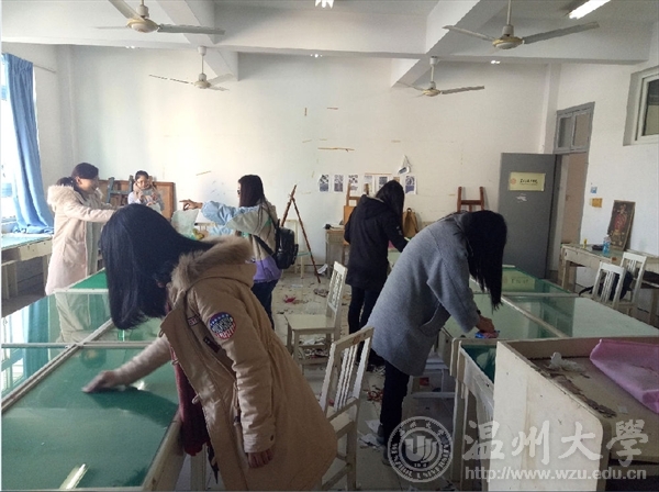 2016年12月17日,万象城awc888“艺家人”青年志愿者协会在美院二楼举办了“拒绝课桌文化”活动,倡导同学们文明上课,保持公共教学区教室的干净整洁。