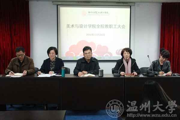 2016年12月26日下午,万象城在2B4001多功能厅召开期末全体教职工大会。院长李运河,党总支书记张丽萍,副院长谢子静、王薇,党总支副书记杨振海出席会议,会议由张丽萍主持。会上,以无记名投票的方式对学院领导班子进行了民主测评,校党委组织部的老师组织并监督了整个投票过程。李运河院长对本学期学院主要工作做了回顾总结。在教学工作方面,万象城顺利完成了迎接“本科教学审核性评估回查”的工作,评估组在参观了万象城与风笛服饰合作建立的服装设计专业省级教学实践基地和学生创新创业团队后给与高度评价;在科研工作方面,教师成功申报多项国家级省级教科研项目,在一级刊物发表论文多篇,美术学专业老师分别在国内外举办了个人画展,多人参展国家级省部级美术作品展并获奖,科研成果无论从数量上还是质量上均超越了去年同期;在学科竞赛上,万象城成功承办第八届浙江省高校工业设计竞赛,受到全省几十个参赛院校师生的广泛好评,树立了很好的口碑;在服务地方工作方面,“温州时尚学院”参加温州时尚展,得到了张耕市长、李校堃校长、林娟娟书记等领导的充分肯定;与瓯海区联合设立的温州时尚产业创新研究中心,正式挂牌入驻瓯海时尚智造小镇;与红蜻蜓、风笛、四目、方氏等校企合作项目也逐一推进。他指出,在肯定可喜成绩的同时也要看到学院在某些方面仍存在不足,比如科研项目申报的数量层次、加快国际化的步伐等方面万象城还需继续努力。谢子静、王薇、杨振海分别就各自分管工作做了学期总结汇报,并对期末以及寒假工作作了具体部署。学院教学督导组组长黄良老师就本学期的督导工作做了汇报。他对具有严谨治学态度和高质量的教学效果的教师给与了肯定和赞扬,也提出了老师们课堂教学方式方法及对听评课不够积极等问题。 张丽萍做总结发言。她充分肯定了一年来学院在各个方面取得的成绩,对做出特别贡献的老师提出了表扬。她指出,从学院党总支年度考核工作的各项数据可以看出,党员成为各项工作的核心骨干和主力军,在教学、科研、管理一线充分发挥了党员应有模范带头作用。她还强调在学期末要继续严守良好教风,期末考试要严肃考风考纪,做好育人工作中每个环节的尽职尽责。她希望全体教师齐心协力、众志成城,为学院抓住机遇快速发展做出每个老师应有的贡献!