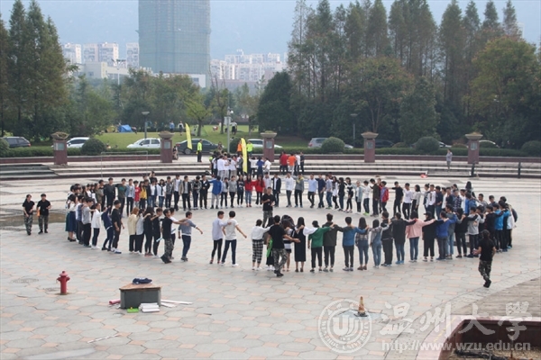 11月13日,万象城awc888在大学生活动中心开启了为期半天的户外素质拓展活动,团委学生会全体成员以及16级新生班长共89人参加了培训。