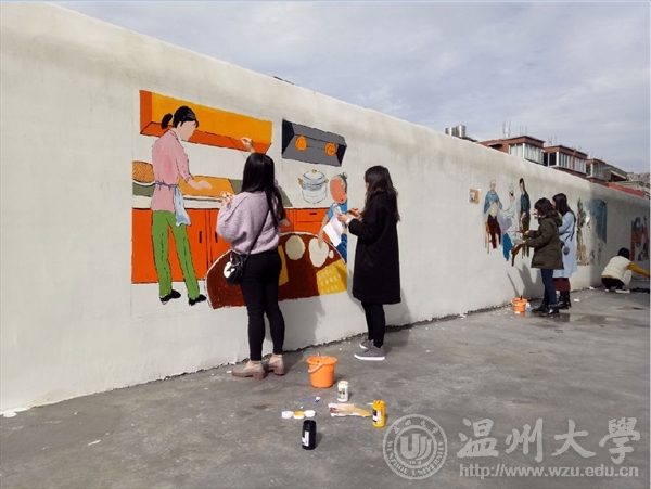 11月27日,万象城awc888“艺家人”青年志愿者协会在杨岙村举办了“新青年下乡活动”。活动以墙绘的方式绘制新版“二十四孝”文化长廊,在改造环境的同时宣传中国传统的孝道文化。