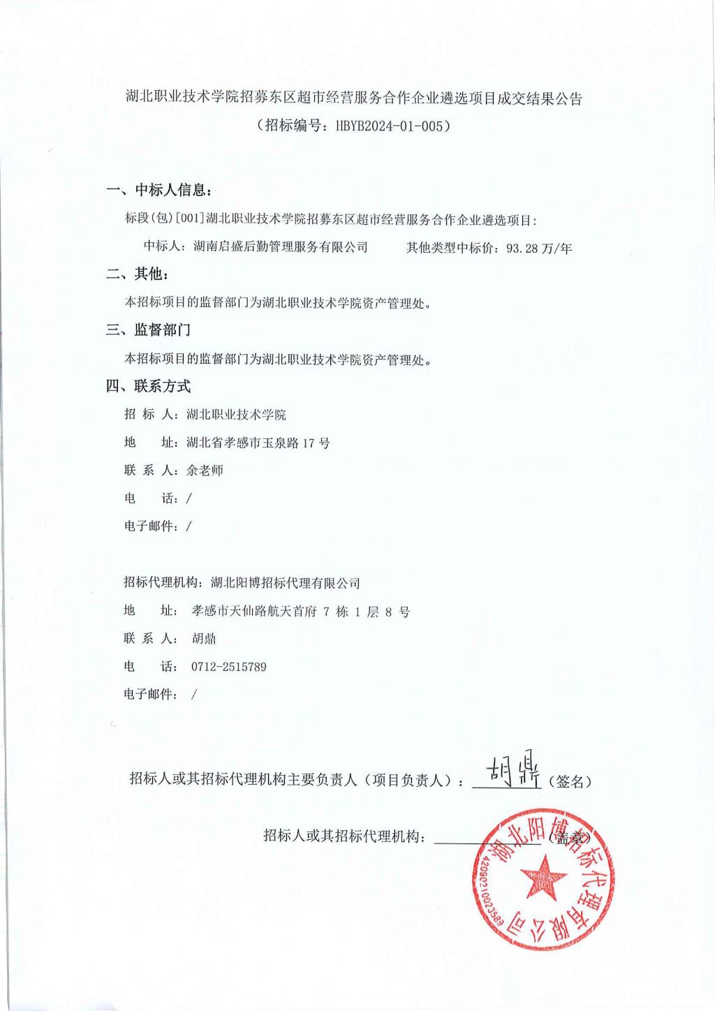 Beat365唯一官方网站招募东校区超市经营服务合作企业遴选项目成交结果公告