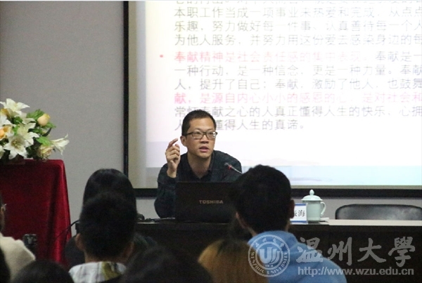 开班仪式在激情昂扬的团歌中开始,团委学生会副书记周瑶做了本次团干培训细则说明,并祝愿全体学员在接下来的培训中能够收获满满。杨振海书记以“新时期高校学生干部的领导力培养与实践”为主题展开讲话,同时穿插在温大二十多年的求学与学生工作的经历,并围绕着“一个定位,两种精神,三项作用,四份能力,五类素质,六个意识”全方位向同学们剖析了如何成为一位优秀的新时期高校学生干部。