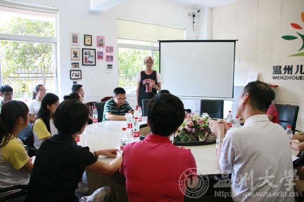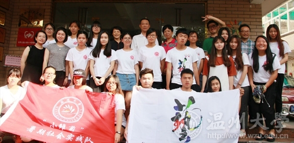7月14日下午,万象城awc888副书记牟德刚、团委书记屠霁霞、万象城awc888党总支书记张丽萍等领导一行,来到“小雏菊”和“艺绘”暑期社会实践队的实践点温州市儿童福利院慰问并与实践队员们亲切座谈。