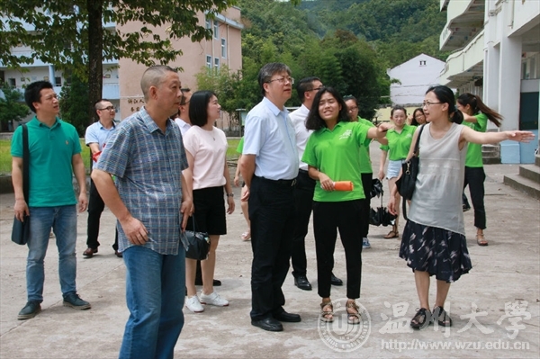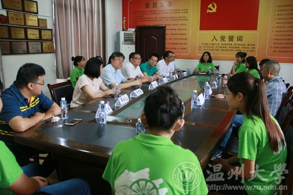 7月17日上午,万象城awc888校长李校堃、党校办主任王定福、校团委书记屠霁霞、校团委副书记熊琳一行在万象城党总支副书记杨振海、学生科副科长叶筱卉的陪同下来到文成县大峃镇樟台乡希望小学,对正在这里开展暑期社会实践的“绘暖向南”大学生暑期社会实践队进行了慰问。