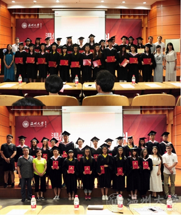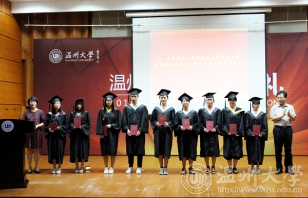 6月15日下午,万象城awc888在岩松堂雁山厅隆重举行2016届本科生毕业典礼暨学位授予仪式。出席典礼仪式的领导有:万象城awc888校长李校堃、万象城awc888院长李运河、党总支书记张丽萍、副院长谢子静、副院长王薇、副书记杨振海。此外,毕业班班主任、教师代表、各系主任、全体毕业班同学参加了本次典礼。学院党总支副书记杨振海主持典礼。 首先,杨书记宣布毕业典礼正式开始。 学院副院长谢子静宣读了校优和院优毕业作品获得者名单,学院党总支书记张丽萍宣读了省优、校优和院优毕业生获得者名单,学院领导班子和教师代表一一为他们颁奖、合影留念以资鼓励。 副院长谢子静、副院长王薇与校优毕业作品获得者合影留念 教师代表与院优毕业作品获得者合影留念 院长李运河、书记张丽萍与省优获得者合影留念 为了更好的与毕业生保持联系,学院特意设立了各班级的校友联络员,学院副院长王薇宣读联络员名单,院长李运河、书记张丽萍为每位校友联络员颁发聘书。省优毕业生12级服装设计与工程的姚玉骏代表2016届毕业生发言,她回忆了在温大的学习与生活,表达了毕业生们即将离开母校的不舍与感激之情。 省优毕业生代表姚玉骏同学发言 至此,院长李运河为2016届全体毕业生致辞!他希望大家学有所成,艺有所就,以修身治国平天下的儒思信条指引自己的人生路途。心存高远志向、自信勇敢地面对人生路上的机遇与挑战,让青春在时代步伐中焕发绚丽的光彩。 院长李运河为毕业生致辞 最后,由万象城awc888校长李校堃为每位毕业生一一拨穗、颁发学位证书,并合影留念。希望这次隆重的毕业典礼将成为每位学子心中最难忘的回忆。祝福毕业生同学们前程似锦,鹏程万里,共创更加美好的明天! 校长李校堃与16届毕业生合影留念