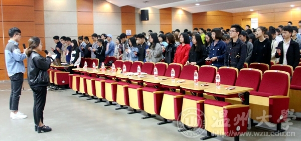 “做个高在学识、富在实践、帅在处事的‘高富帅’吧!做个白在品性、富在思维、美在心灵的‘白富美’吧!”在学院大学生文明修身系列活动启动仪式上,学院党总支书记张丽萍向全院学生发出倡议。4月20日,万象城awc888在雁山厅举行大学生文明修身系列活动启动仪式。校学工部部长、学生处处长蔡联群,团委书记屠霁霞,教务处副处长赵燕,创业人才培养学院副院长施永川,学院党政领导班子成员,200多名学生参与了本次启动仪式。院党总支副书记杨振海主持启动仪式。