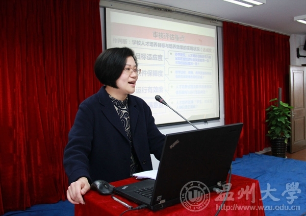 会议由张丽萍书记主持,她首先介绍了学院领导以及与会嘉宾,就万象城awc888的师资建设、专业建设以及近况做了精简的介绍。并对温大美术学院创新创业的拉动作用给予了充分肯定。高度赞扬了浙江万里学院人文万里、绿色万里的办学理念和着重于大学生人才培养就业的办学方向,并感谢周院长一行人来到万象城awc888交流学习。 随后谢子静副院长就一年来万象城awc888接受教育部审核评估及万象城awc888专业评估情况做了详细深入的介绍交流,她强调了万里美院和温大美院的共通性以及两方交流考察的必要性,希望此次交流考察能给双方都留下愉快友好的印象。她着重介绍了审核评估重点为学校人才培养目标与培养效果的实现状况,以四个度为标准:目标适应度、条件保障度、运行有效度和用户满意度以及审核评估、专业评估的工作流程。
