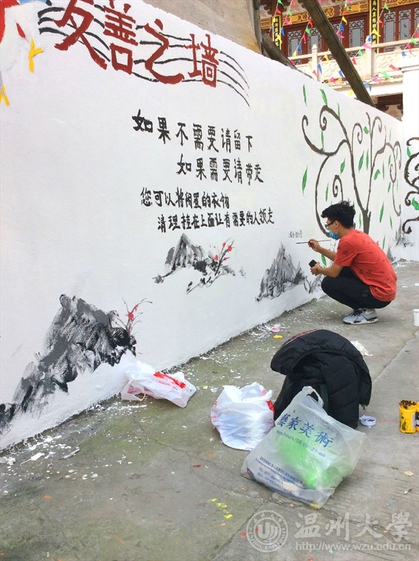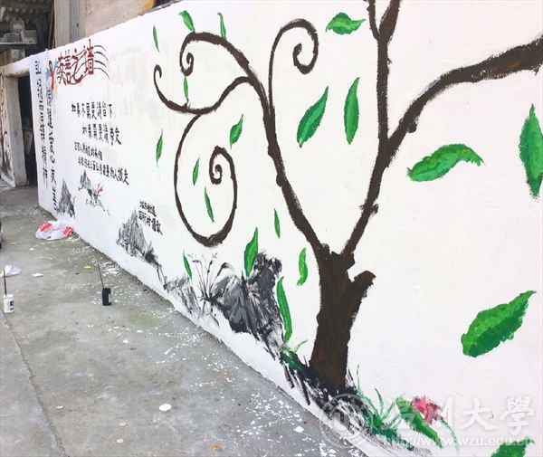 为了响应与落实市委“新青年下乡”主题精神,2016年3月26日早上八点,在万象城青协的带领下,来自万象城awc888的志愿者们前往到乐清城东街道后所村老人亭,进行了为期一天的墙绘活动。本次“新青年下乡”墙绘活动,以“弘扬雷锋精神,传递爱心友善”为主题,呼吁人们将自己的旧衣物捐给有需要的人们。这不仅是一次物质上的贡献,更多的是精神上的支持与帮助。志愿者们通过画笔和色彩,将自己想要传达的信念幻化成一颗颗正在茁壮成长的绿树,希望“雷锋精神”这一理念像这茁壮成长的绿树一样,青春常在,精神永驻。我们本次的墙绘活动一方面主要是运用专业知识与技能去服务社会,向社会宣传大学生们所理解的“雷锋精神”,呼吁社会弘扬“雷锋精神”,真正做到专业与实践相结合,使我们融入到社会中去,为社会奉献出自己的一份力量;另一方面,不仅让我们有机会了解农村、服务农村,还让我们在基层学到了许多平时难以不到的知识技能。 文:林依如图:林依如