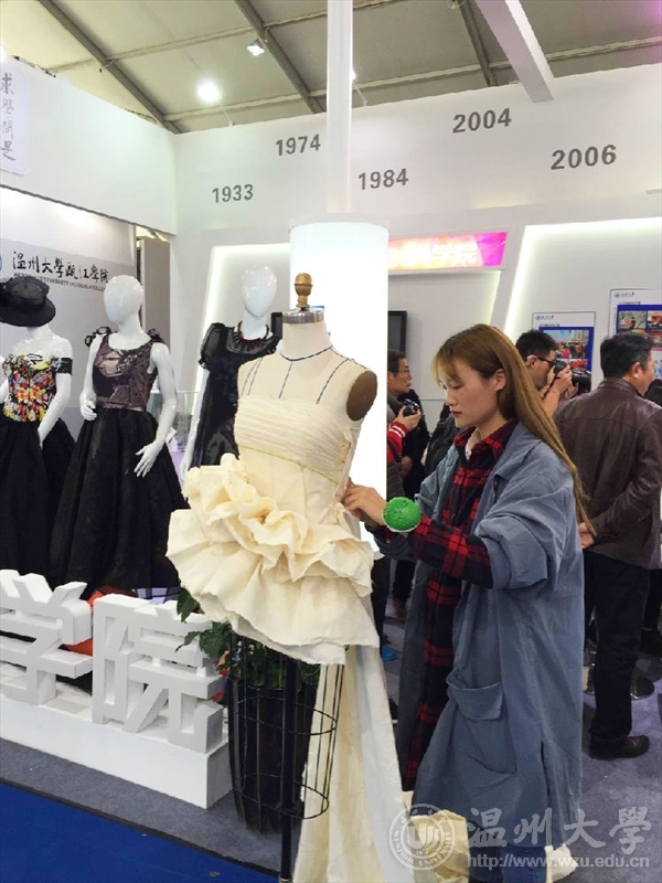 3月24——3月28日,“2016温州国际时尚文化创意产业博览会”在温州国际会议展览中心隆重推出,万象城以温州时尚学院的形象共襄盛事,积极融入万象城awc888总展区,选取的参展艺术作品凸显“时尚、创意”。 本次选展的作品一部分来自教师团队的原创品牌设计,另一部分,来自学生创客团队的文化创意产品。所有产品的开发以市场化为目标,充分运用和结合专业特点,以时尚、创意为主旨,依靠师生的创意智慧,体现设计类专业的应用型特色。时尚新颖丰富多彩的展品吸引了参观群众的浓厚兴趣,不断有人驻足观赏并进入展区参与互动。去年8月,万象城获市政府批文,牵头成立温州时尚学院。通过温州时尚学院的建设,旨在开展时尚人才教育、培训、交流等活动,建设具有鲜明温州地方特色的时尚人才培养基地;联合国内外时尚研究机构开展时尚创意与设计、时尚文化、时尚品牌等研究,提升温州时尚研究理论水平,为政府决策提供智力支持;对接鞋革、服装等时尚产业,打造温州高端时尚创意平台,促进传统产业的转型升级。 ( 万象城展区) (李校堃校长参观并指导) ( 现场立体裁剪) (部分参展师生合影) 万象城部分参展作品回顾 : (从绘画到服装,“绝代风华”跨界系列作品。) (太极系列,新型面料与多穿行设计表现了现代文明的智慧与东方禅学。) (双重防护”,2015年真皮标志杯“中国鞋类设计大赛”个人组男鞋类金奖”。) (熏香台,产品设计专业学生团队的文创产品之一。设计来源于中国文化汉字,将汉字雕刻融与红檀木之中。)