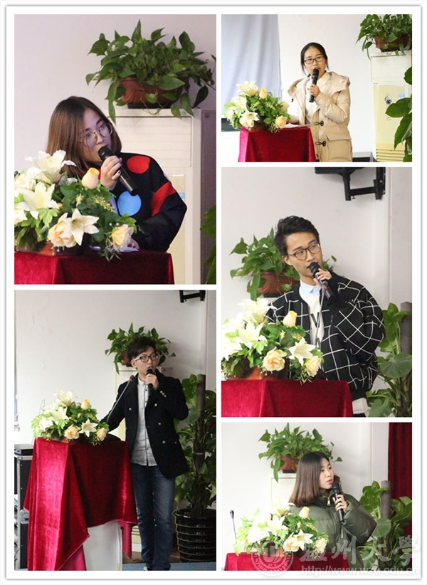12月30日晚,万象城awc888团委学生会2015-2016学年第一学期第四次全体成员大会在美院楼2B4001召开,参与此次全委会的人员有团委书记叶筱卉老师,团委指导老师商义铮老师,团委副书记孙彦鑫,学生会主席张昇,学生会副主席刘秀娜,学生会副主席周志豪,青协会长杨猛以及团委学生会全体成员。 会议第一项议程是“每月之星”的评选。转眼间,3个月前在这里面试并荣幸的成为了团学的一员,工作时还会手忙脚乱的青涩的干事们,现在已经可以自信地站在团学全体人员面前做工作总结了。干事们以十足的诚意准备的精彩演讲博得阵阵掌声。正如有个干事所说的那样:“你的人生永远不会辜负你,那些转错的弯,走错的路,留下的泪,滴下的汗水,全都会让你成为独一无二的自己。”相信经过团学的工作磨练后,干事们会更加优秀,成为更好地自己。 第二项议程是每个部长汇报本月工作,各部长诚恳陈述了工作的优缺点,也对工作做出了简要说明。 第三项议程是老师讲话。团委书记叶筱卉老师和团委指导老师商义铮对于“每月之星”的演讲表示非常欣喜。团委书记叶筱卉老师说,“每月之星”不仅展示了个人形象,也展示了部门风采。同时老师也建议干事们多谈自己的工作成长,和具体的点滴会更好展示个人的学习收获。同时,叶老师也分享了她的体会心得。叶老师说,比起成绩,成长更重要。我们现在获得的成绩是对我们付出的认可,希望同学们工作中得到锻炼,有所成长。在成长中,我们不能随波逐流,要做好自己的选择,并在现在和将来做好自己。看看自己今天做了什么,有什么可以引领自己,使成长在足够长的时间里得到积淀,再回过头给自己做一个成长鉴定。 最后,学生会主席张昇的讲话让同学们体会到身为团学一员每个人工作的重要,和必须的责任感。团委学生会在和谐的气氛中结束了,相信优秀的干事们可以在工作中得到更多磨砺,让美院团学更加精彩。图:设计宣传部文:设计宣传部
