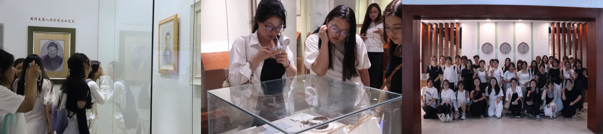 实践环节结束后,同学们集体前往温州发绣艺术馆参观。在专业人员的讲解中,大家沉浸于发绣的艺术世界,深入了解其“以发代线,以针作笔”的独特技艺,并通过观摩一幅幅精美作品,真切感受这门传统艺术跨越时空的文化魅力与匠心传承。