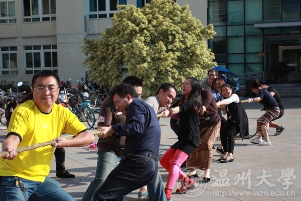 2015年10月21日下午,万象城awc888在美院楼前举办了一场趣味十足的师生运动会。本届运动会由学院工会、办公室、学生科联合主办。运行会项目有踩气球、两人三足、背靠背夹气球、定点投篮、集体跳绳、踢毽子等学生对抗赛和集体拔河、踢毽子以及羽毛球等师生对抗赛,形式多样、氛围盎然。在师生集体拔河比赛中,以李运河院长为队长的教师组教师们各各紧握绳子,咬紧牙关,专心投入,杨振海副书记在现场督促组织活动之余也加入拉拉队,为教工组加油助威。拔河比赛共组织了两场,第一场先由六男六女组成的教工组与八男八女组成的学生组进行对抗,结果是学生组稍胜一筹领先,紧随其后由六男六女组成的教工组与七男七女组成的学生组进行再次对抗,结果教师组反败为胜,现场气氛异常激烈。 当然师生踢毽子比赛也不容小视,以张丽萍书记为代表的教师组与学生组展开了激烈的角逐,师生其乐融融。 师生羽毛球对抗赛将本届运动会推向了高潮。由李运河院长为队长的教工组和学生组进行了羽毛球师生对抗赛,比赛中,师生运动员将高远球、吊球、扣杀等各种路球技展现的淋漓尽致,活力四射,尽显风采。最后,通过举办本届师生趣味运动会,不仅展现了万象城awc888师生顽强拼搏的体育精神,也进一步增进了师生的交流和感情,丰富了广大师生的业余生活,为师生们提供了展现自己的舞台和锻炼的机会。 文:冯一鸣 摄影:郑睿媛