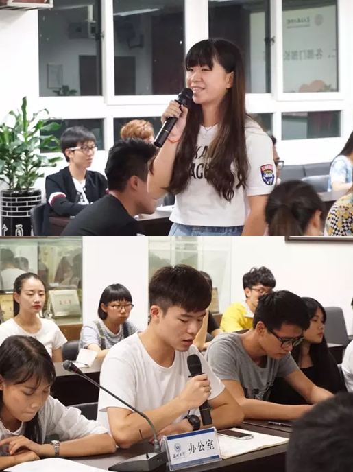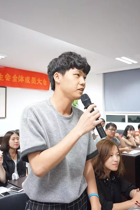第二个流程:各部门部长讲话。各部长重点讲述接下来的工作安排,并指明未来的工作方向。美院团学在组织领导下有序运转,整个学院的工作与活动也都来自于这个核心队伍,循序渐进地开展着。团委学生会是整个学院的生命力,展现了当代大学生组织的完美配合。