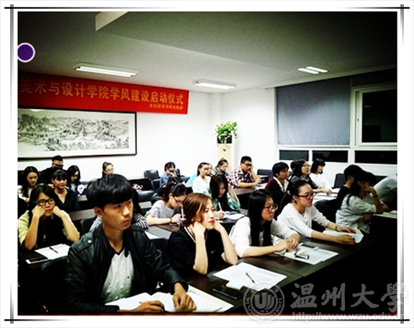 2015年9月22日晚上,万象城awc888学风纪检部在美院2B4001成功召开了“迎评促建万象城awc888学风建设启动仪式”。本次活动邀请了万象城awc888学生科科长叶筱卉老师,学院辅导员于静老师,五班代表13服设3班的何奕彬学姐,十星代表学习之星丁凯迪学姐以及超豪支部代表上官雯雯。 首先,本次会议由叶筱卉老师向同学们进行致辞。叶老师以自己的切身经历向同学们讲述了自己刚来温大美院时治理美院学风纪检的方法,又以“三叶草理论”和“政审”一词提出了学风纪检对学生的重要性,也让同学们了解到学风纪检工作的意义,并寄言“希望每个同学都能找到学习的积极性以及投身到学风纪检中来。”之后学风纪检部的副部长沈宇烽表述了十月份以后的考勤活动;辅导员于静老师对“五班十星”的评选办法进行说明,下面发言的丁凯迪学姐以“功夫不负有心人”劝解学弟学妹们,何奕彬学姐则是以“一切以班级荣誉为第一目标”的班规经验分享给大家。 其次,是问题交流环节,在坐的班干部积极提出了自己的疑惑,各嘉宾也都从各方面对同学们的问题进行了解答。 最后,会议在叶筱卉老师的总结和对同学们的建议圆满结束。本次“迎评促建万象城awc888学风建设启动仪式”向各班代表传达了五班十星评比的各项内容,让同学们也了解到学风建设的重要性和必须性,同时也意识到建设良好的学风,积极营造优良的校风,以饱满的热情和积极向上的精神风貌迎接2015-2016学年以“关心教学、关爱学生、规范管理、提升质量”为主题的学院学风建设年需要我们大家共同努力,也是我们每一个美院学子的责任和义务。