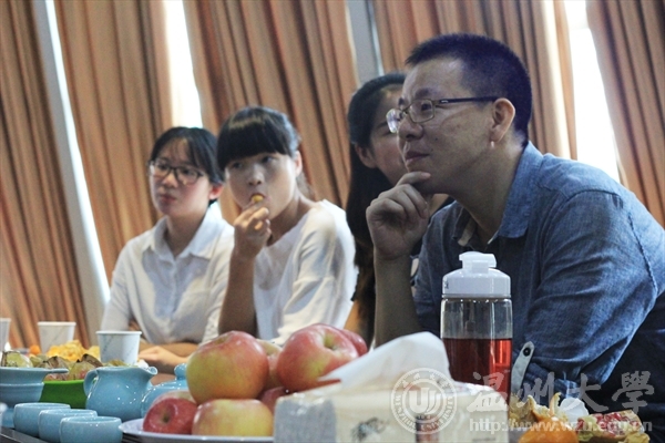 2015年9月24日下午1时在万象城awc888的视野空间交流室内,艺路导航第六期师生交流会如期举行,本期特邀万象城awc888黄容海老师。 人生如茶。一苦,二涩,三而甜。沐浴着茶叶所散发出的醇香,在一片氤氲中大家便开始了热络的畅谈。黄容海老师亲切的问候,诙谐的语言,带来这场无拘束的近距离座谈会。 活动开始黄容海老师首先询问了同学们生活和学习方面现状的了解,当聊到近期作业过多这个问题时,学生们都愁眉苦脸,黄容海老师首先提到了“主动学习”,黄老师说“作业虽然数量多,然而质量和态度才是更为重要的,我们应该要学会转换性思维,只要你积极主动去做,认真用心去体会,必然会感受作业带给你的收获。”并强调到时间规划的重要性,推荐大家每天给自己一个规定的时间来完成作业,花多少时间做事是由自己决定的,不要逼着自己熬通宵,同时,并举了一个例子,一个员工熬夜加班在半夜两点给老板发文件,第二天却换来老板一顿臭骂。说明认真并不是你的通行证,还需要效率和规划。老师的话如一记警钟敲响了在场的同学们。之后针对专业的问题,一场简单的交流似乎以无法满足大家的疑问,同学便直接回教室搬出了展示模型,一场直观实践的现场教学和专业指导便开始了,黄老师对同学进行了耐心的解答,在座的同学们都受益匪浅。如山涧的流水娓娓道来,意味深涵,又像是大海里的指向标引领者同学们走向更美好的明天。 时间就是如此,你不曾觉得拥有却悄然离去,不知不觉已到了尾声,收获了信心,收获了温暖。在一片欢声笑语中,座谈会也到达了尾声。同学们在这轻松愉快的氛围中恋恋不舍地离去。短短几杯茶的时间,每位同学的心仿佛被黄老师的温声细语擦去了所有尘埃,愈发干净透明,也如同被清茶洗涤,找到并确立了自己的方向。此次座谈会就圆满结束了,相信黄老的劝导和鼓励,能使同学们以积极的态度展望未来。 摄影:黄磊 通讯:周瑶