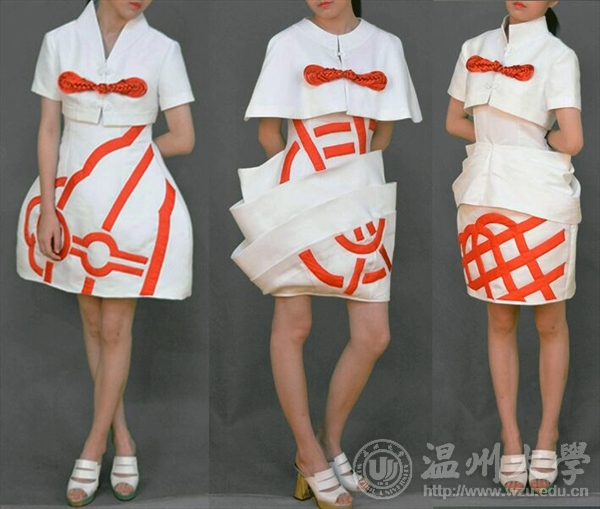 万象城服装专业共六个系列作品参赛,圣卡拉拉大学校长对万象城学生作品给予充分肯定,他认为温大学生作品极具创新地融合中国-国际、传统-现代各类元素,传递着中国元素与西式造型融合、传统工艺与现代时尚结合,尤其对倪培培的“not only Chinese knot”、邹启豫的“SNOW”、乐江凤的“冰岛童话镇”给予高度的评价。