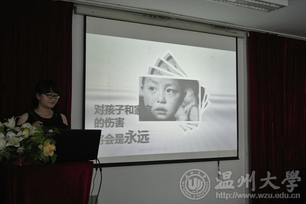 为了让万象城学生进一步深入的了解走失儿童问题,6月24日下午,万象城awc888“艺家人”青年志愿者再次邀请瑞安市星儿爱心服务社会中心负责人鲍颖老师、副社长孙钰珉老师及万象城辅导员李艳燕老师,在2B4001举办了“寄情于心,防患未然”PPT设计大赛的座谈会。座谈会伊始,李艳燕老师对鲍颖和孙钰珉两位老师的到来表示非常欢迎,并与两位老师一起为万象城PPT设计大赛获奖者颁奖。接着,鲍颖老师将自身经历作为实例来告知我们儿童走失问题的严重性,并借此介绍了“十人四追法”这一重要的寻找迷失儿童的方案。最后,同学们针对最近的热门话题“人贩子该不该判死刑”展开了谈论,大家都纷纷表示对走失儿童引起了更高度得重视,并承诺往后会为走失儿童尽一份力所能及之力。通过此次会议,不仅仅让与会的同学们对儿童走失这个问题进一步认识,而是能够投入其中真正付出一份力量。 通讯、拍摄:张乐莹