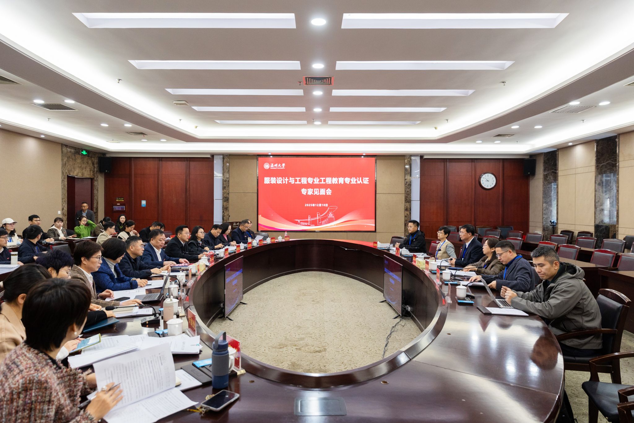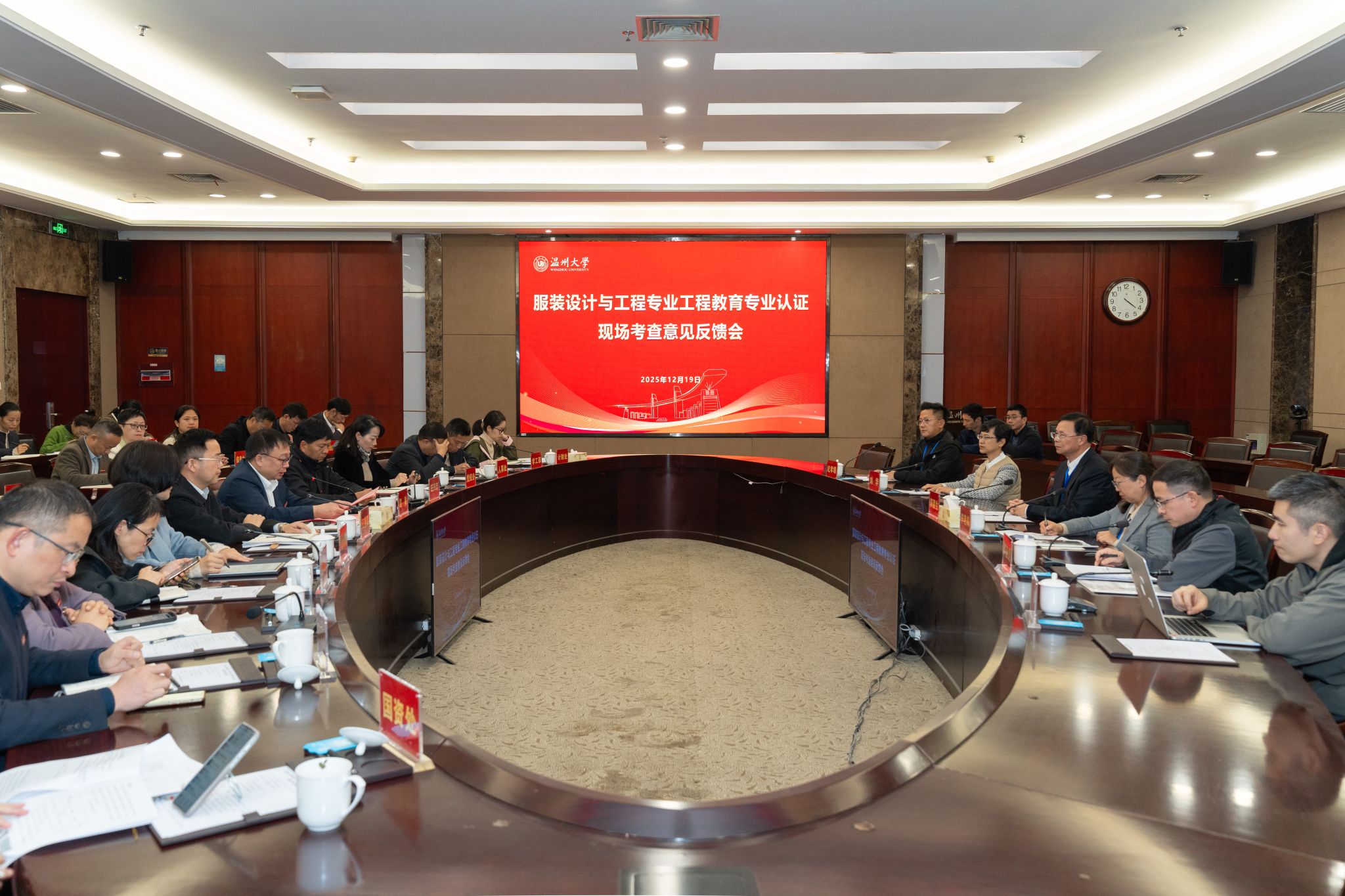 学校相关职能部门负责人,万象城awc888领导班子成员,服装设计与工程专业负责人及全体专业教师,相关工科学院教学副院长及专业负责人参加了见面会和反馈会。