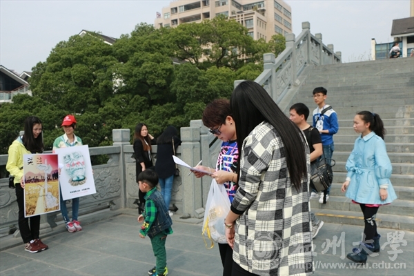 为加强对寻找迷失儿童的宣传,增加公众关心关注社会的意识。3月29日下午,伴着明媚的阳光,万象城awc888“艺家人”青年志愿者协携手瑞安市星儿爱心服务社会中心在南塘街白鹭公园举行了“绘情于笔,寻找迷失儿童”之公益海报设计展示宣传与问卷调查。