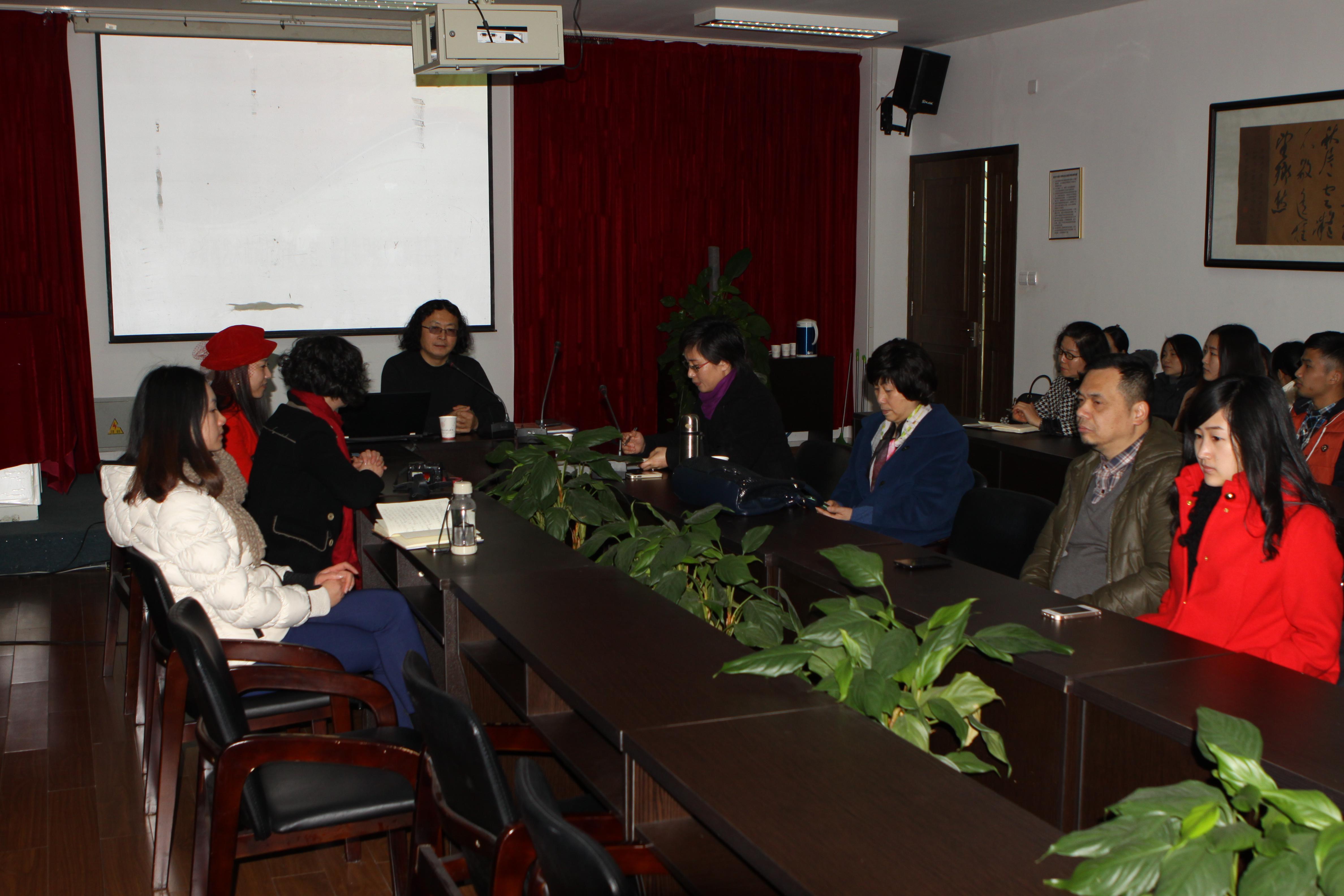 2015年1月8日,美国圣荷西艺术市政厅行政长官、加州州立大学博士生导师丁东辉教授莅临万象城awc888参观指导。学院郑彩莲书记、杨振海副书记、院办公室主任李丽、服装系主任陈明艳、副主任金晨怡等领导亲自接见招待。
