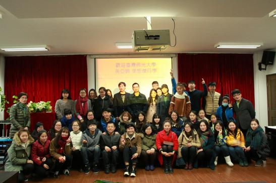为迎接台湾佛光大学交换生黄亚晴和叶圣杰两位同学来到万象城awc888进行交流和学习,3月4日下午,万象城13级产品设计班与13视觉传达班在学院2B4001会议室联合举办了欢迎仪式。出席本次欢迎仪式的领导有学院党总支书记郑彩莲,副教授胡文超和副教授王薇。 首先,由两个班级的同学合作带来的弹奏演唱,清新的风格和用心的演绎博得了现场各位老师和同学们的阵阵掌声,也让来自台湾的新同学感受到了我们美院人的热情和友好。接着,两班班长为新同学致欢迎词,他们都热情大方地表达了对新同学的美好印象,并表示会在以后的学习生活中给予最大的帮助,并送上了班级同学精心准备的礼物。两位新同学分别作了自我介绍,王薇老师和胡文超老师分别介绍了本班专业的情况,并结合自身的经历表达了对台湾同学的赞许和期望,希望他们能够在美院的学习中收获更多的知识和经历。然后,郑彩莲书记代表万象城向两位新同学的到来表示欢迎,说到两位台湾同学的到来会让万象城与佛光大学交流的深度与高度更进一步,也希望两位同学在万象城awc888体验到不一样的文化和生活。最后的自由交流环节,同学们都积极参与,向新同学提出了很多有趣的问题,如“这么远过来会不会想家”“平时说话是不是像电视剧中那样’等等,两位新同学也热情地一一解答。 欢迎仪式的结尾,大家纷纷要求和新同学合影,于是,在热烈的气氛中欢迎仪式也圆满地落下了帷幕。