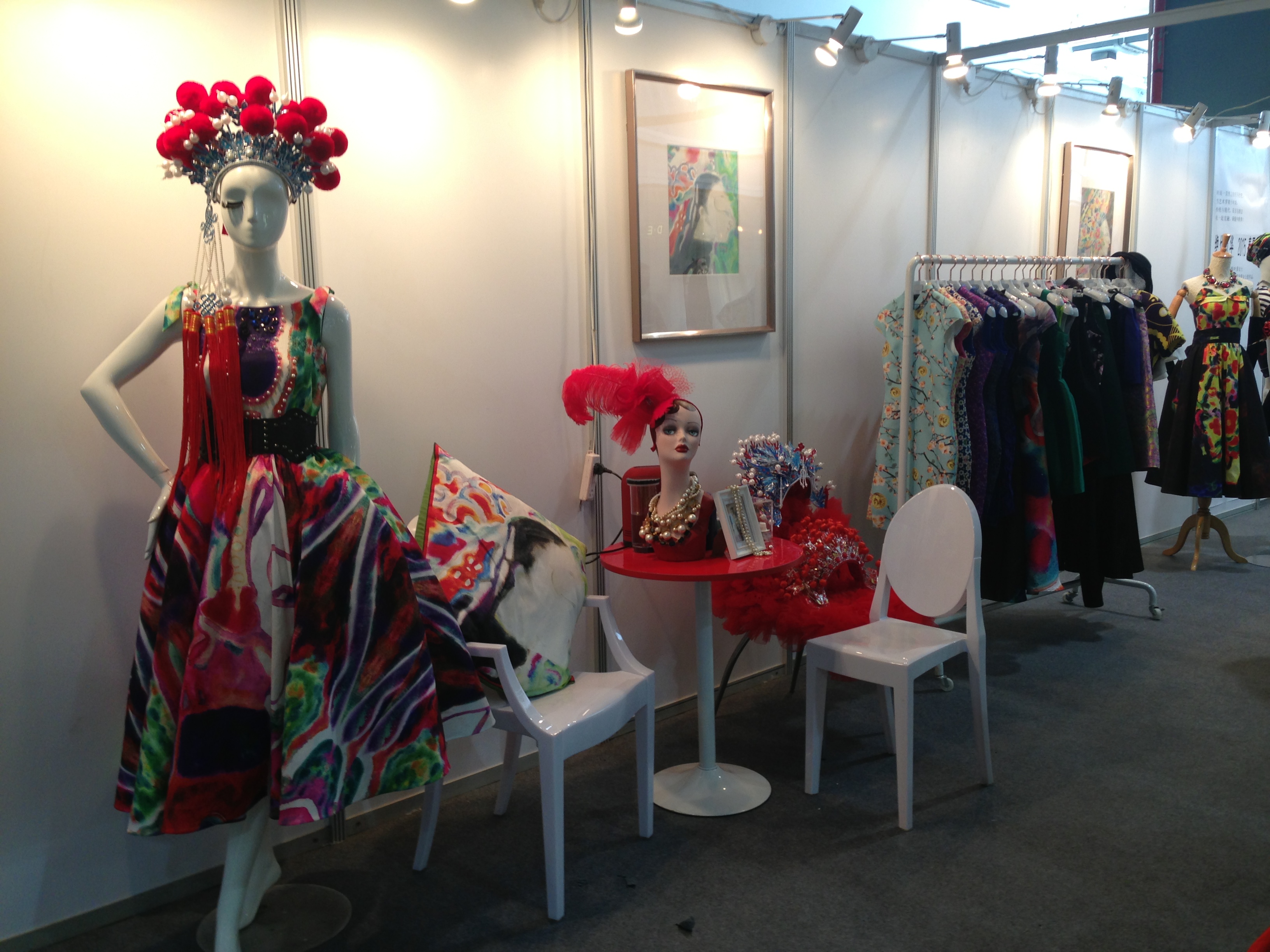在近日2014温州国际时尚博览会的现场,一个很有特色的展位以惊艳的视觉捕获了参观者的眼球。象画廊、又似戏曲舞台,看似传统却透着时尚,这便是由温大万象城awc888副教授叶茜携手著名画家蔡瑞蓉女士(温大美院教授)的“绝代风华”跨界系列作品。她从艺术作品中提炼画面的视觉,让传统民间皮影文化成为时尚艺术,运用现代数码印花的工艺技术以鲜艳的色彩真实的传递了这一季独具魅力的焦点!本次作品叶茜老师同时结合了指导学生的国家创新创业课题的项目“IN-数码印花创意产品研发工作室”,她与参与指导的叶婷老师一起研究数码印花的工艺和面料效果,并让学生参与图案设计及应用,作品有时装、礼服和家纺等应用产品,在工艺制作上也得到了浙江丽丰服装科技有限公司和杭州宏华数码印花的大力支持。温大万象城awc888院长李运河教授和服装系主任陈明艳教授特意到场观看,并高度评价!