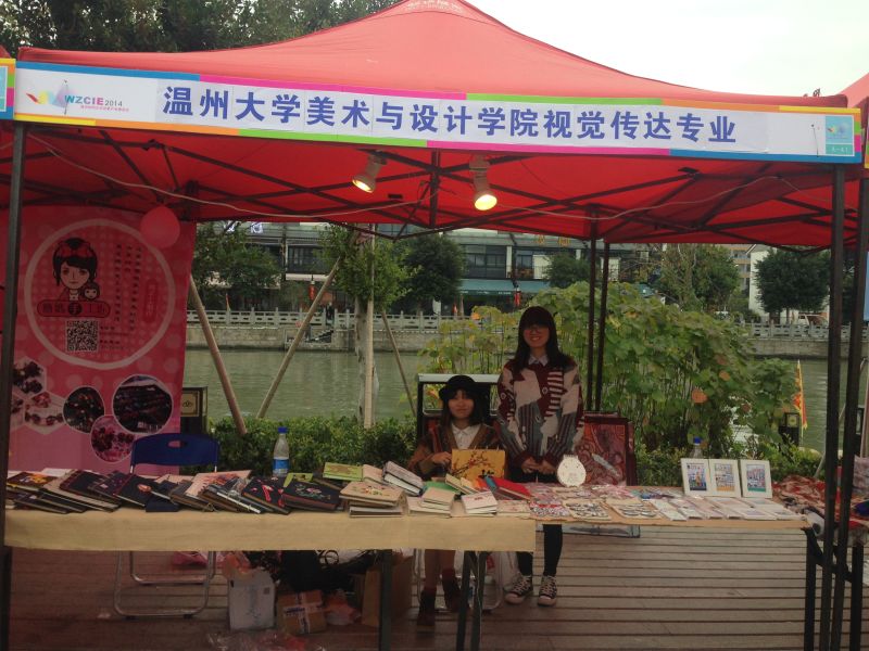 2014温州时尚文化创意产业博览会在我市隆重举办,它是一场历时7天的时尚文化饕餮盛宴。以“创意都市、时尚生活”为主题,旨在加快推动温州文化创意产业发展,带动“温州制造”向“温州智造”转变。 为了积极响应和推动温州文化立市的政策,也为了激发学生的创意意识,视觉传达专业周瑾等老师结合课程内容,组织12设计和12师范班学生参加秦际白鹿洲文化村创意市集活动,学生的手创本等作业颇受市民的青睐。让学生在活动中交流创作经验,展示最新的原创手作,感受获得市场肯定的成就感,这就是学生参加此次活动的初衷。 希望,以后万象城的设计教学能把握更多的此类互动平台,来推动万象城awc888视觉传达专业文化创意人才的培养。