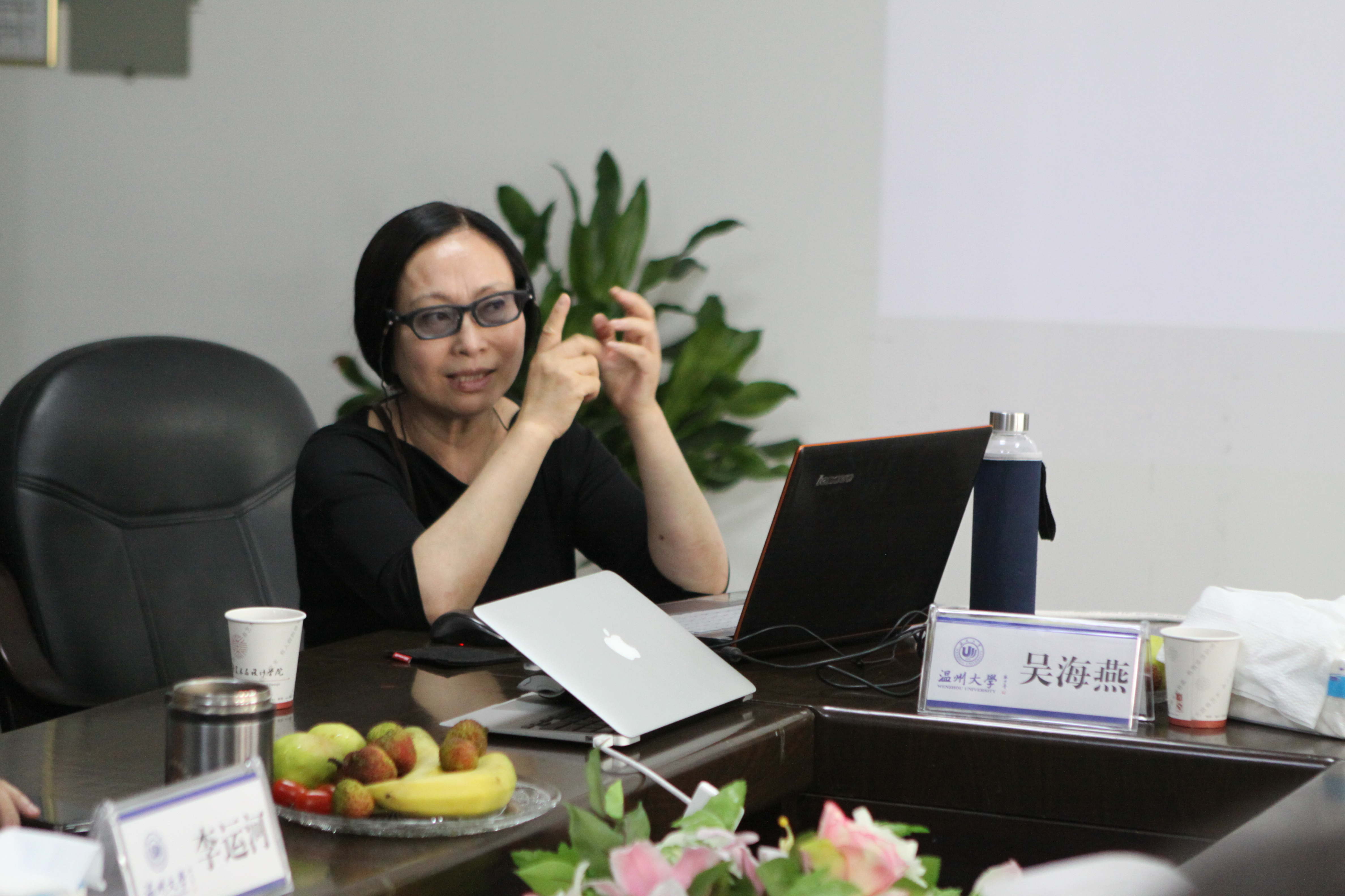 5月24日上午,全国政协委员、中国美术学院设计艺术学院院长、博士生导师、中国服装设计协会副主席吴海燕教授应邀来校,在万象城2B216举办了题为《设计入道》的学术讲座。出席本次活动的领导有万象城awc888院长李运河、党总支书记郑彩莲、副书记杨振海及设计专业师生。
