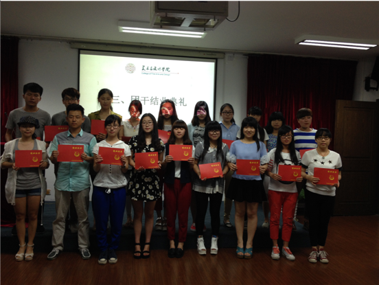 5月25日晚,万象城awc888团委学生会在2B4001举行本学期团学干部培训的结业典礼。参加此次活动的有学院团委副书记邹启豫和学生会副主席应珊珊,以及团委学生会全体成员。 随着激昂有力的团歌响起,团委副书记邹启豫、团委学生会副主席应珊珊为团委学生会干事颁发结业证书。这是对他们在团学一年工作的肯定,希望他们在今后的学习工作中也一如既往地努力。 接下来就是游戏环节,本次游戏有两个环节:你画我猜、拷贝不走样。“你画我猜”是针对美院团学成员的专业优势和应变能力而设计的游戏,同学们借助自己的美术语言,表达着内心的想法。“拷贝不走样”是针对同学的理解能力而设计的游戏,参与者借助动作语言表达内心感受。两个活动寓教于乐、精彩纷呈,大家都很享受游戏带来的快乐。 本学期的团干培训让每个参与其中的同学都收获了成长、体会了感动,结业典礼在轻松愉悦的气氛中画上了圆满的句号。