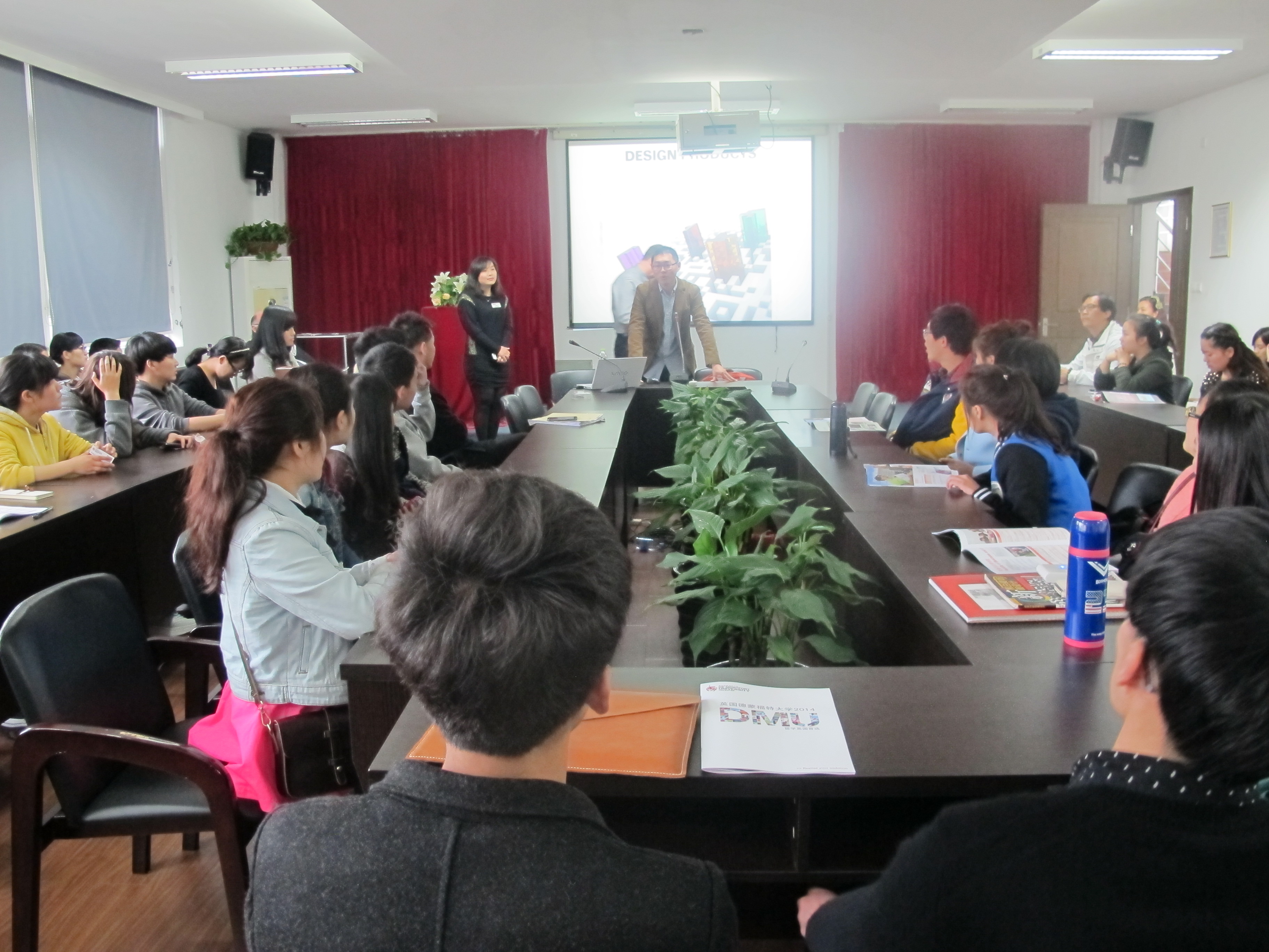 2014年3月31日下午在万象城2B4001会议室,举办了由来自英国德蒙福特大学的两位院长进行的讲座。主讲人Michael院长是英国德蒙福特大学设计学院的院长同时也是艺术设计与人文学院的副院长。 首先,Michael院长热情的介绍了关于德蒙福特大学的概况。然后,开始向同学们讲述有关于英国的设计,他提到了有关设计的挑战,他指出目前世界设计面临的挑战有:一、老龄化问题,在设计是要有社会责任感。二、环境问题,这要求设计师在设计中体现绿色设计的理念。三、资源可持续利用的问题。四、如何与科技相结合的问题。五、文化的辨识性问题。在讲完设计的挑战后,自然得延伸到设计的主题。设计的主题即基于这些设计面临的挑战问题,旨在解决问题。 讲完了大方面的设计概念,Michael院长开始介绍他们本校的产品设计学生的设计作品。那些作品无一不是妙趣横生,具有非常强的设计感。在场的学生都惊叹于国外大学生的才华,在观看中也在学习。Michael院长在讲话时,还不时的结合自己的肢体语言,向同学们完整的传达设计产品的作用,幽默风趣的演讲方式使台下同学听得津津有味。他讲到,英国的学生都有参加一系列的比赛,那些作品不仅仅是他们的作业,同时也获得了很多业内的奖项,同时这也引起我们对未来该如何设计如何学习的思考。 时间过得很快,不知不觉,讲座到了尾声,语言教授David用中文亲切的和同学们互动,希望学生能去他们的学校学习交流。活动在大家的热烈掌声中圆满结束了。这次活动由学院老师和学校外事处老师精心准备,是一种全新的交流,促进了学校与国际接轨,也给学生提供了非常好的平台。