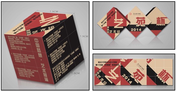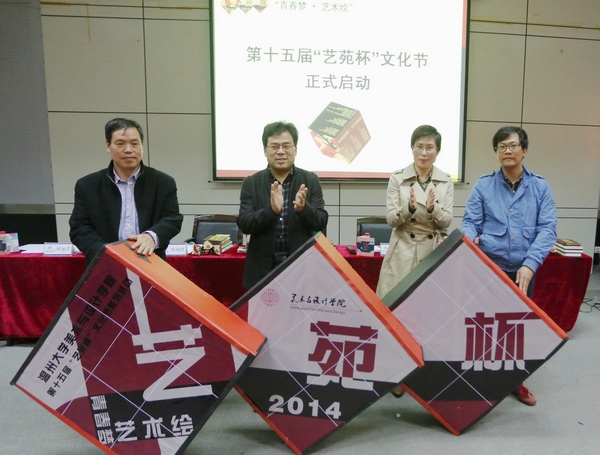 东风送暖,大地回春,韶光淑气中,万象城awc888迎来了第十五届“艺苑杯”文化节。本届文化节以“青春梦·艺术绘”为主题,分为“中国梦想·艺术展演”、“青春礼赞·创意展赛”、“学子砥砺·游憩于艺”三大篇章共20余项活动。4月2日下午,第十五届“艺苑杯”文化节启动仪式在岩松堂叶适厅隆重举行。莅临本次启动仪式的领导有万象城awc888李运河院长、党总支郑彩莲书记、蔡可群副院长、党总支杨振海副书记。学生科辅导员、团委学生会全体成员、13级全体学生、12级和11级班长及团支书参加了本次大会。启动仪式由学生科副科长叶如芳主持。 在致辞中,郑彩莲书记感叹于同学们的才华和创意,对仪式现场的宣传册、邀请函、礼品赞叹不已,对活动能够结合专业、激发创意表示赞赏和欣慰。然后,她用林徽因的诗句“是爱、是暖、是希望”生动展现了“艺苑杯”所营造的“四月天”般的艺术气息。她回顾了“艺苑杯”十四年励志奋进、创新进取的历程,肯定了十四年来“艺苑杯”为促进艺术展示和创作交流、提升学生才华技艺和实践能力、营造艺术氛围和学习环境,推动人才培养和学院发展所做出的贡献。接着,她赞扬了美院学子在过去一年里为响应“中国梦”号召所开展的诸多活动及所获收益,并指出今年的“艺苑杯”将继续发扬“中国梦”的指导思想,以“青春梦·艺术绘”为主题,号召学子们用青春和梦想点燃创作的激情和灵感,用精湛的作品和优秀的成果描绘瑰丽夺目的青春梦想。最后,她希望同学们有“敢于有梦、勇于追梦、勤于圆梦”的意志品格,去参与“艺苑杯”,去实现“青春梦”。 接着,蔡可群副院长宣读第十五届“艺苑杯”文化节启动仪式专业创意奖获得者名单。在欢快的音乐和响亮的掌声中,创意学子带着他们为本届“艺苑杯”所设计的作品走上讲台,向大家展示他们的热情、辛勤和创意。学院领导为他们颁发了证书和奖品。紧接着,迎来了另一批朝气蓬勃的学子,他们是美院创业的佼佼者,他们的远诚文化传媒有限公司、朝阳视觉工作室、曼斯特工作室不仅解决了自己的就业,还为很多在校学子提供了实习岗位和就业机会。在同学们钦佩的目光中,李运河院长授予他们“创新创业实践基地”铜牌。 最后,在激昂澎湃的音乐中,一个巨型的魔方展现在主席台前,与会领导一起旋转魔方,“艺苑杯”三个大字赫然显现,万象城awc888第十五届“艺苑杯”文化节系列活动正式启动!