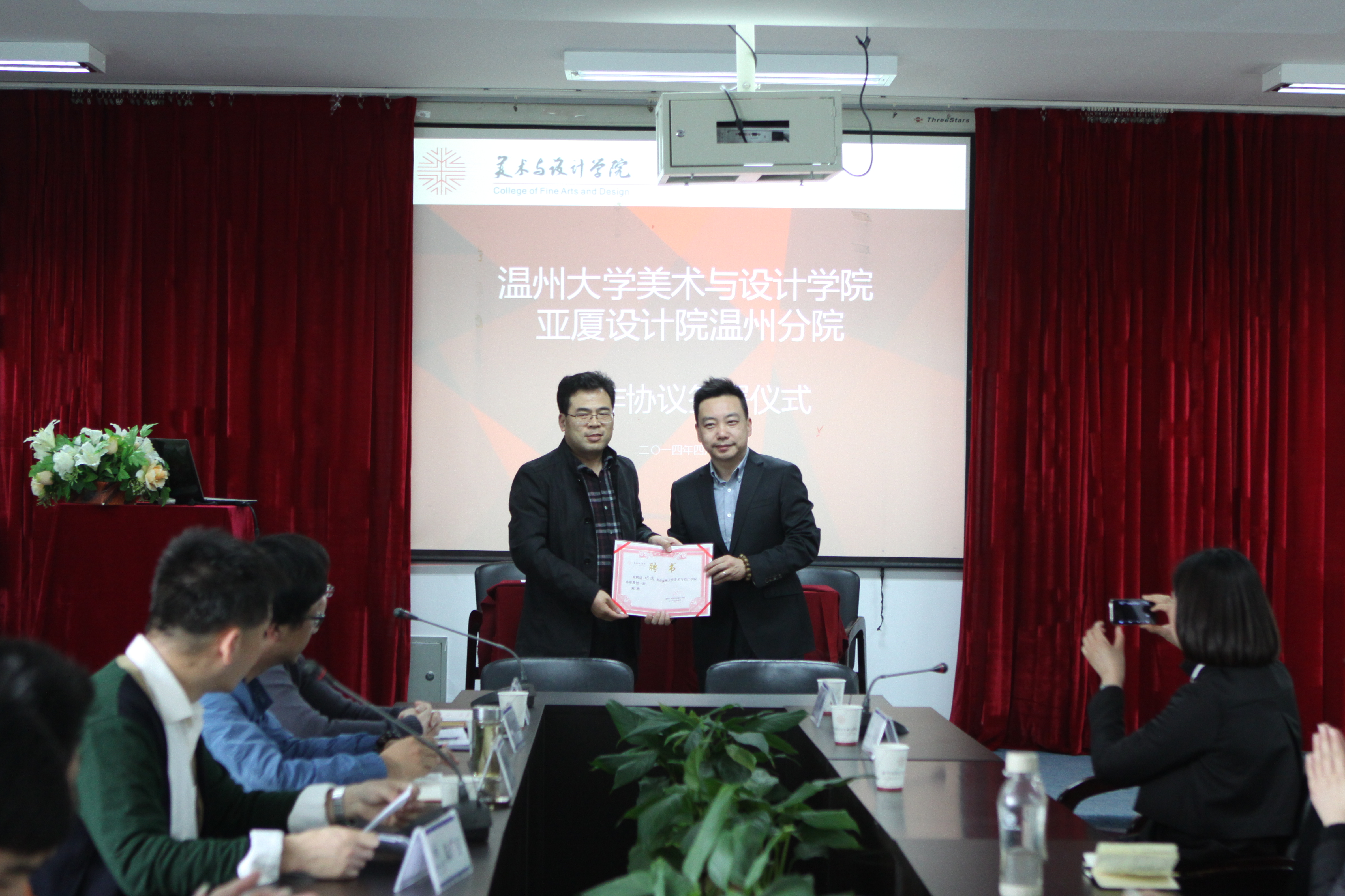 在双方代表的见证下,李运河院长代表本院与亚厦设计研究院温州分院胡逸院长签署了《万象城awc888与亚厦设计研究院温州分院合作协议》。签约之后,李运河院长向胡逸院长颁发客座教授聘书。至此,万象城awc888和亚厦设计院温州分院合作签字仪式取得圆满成功!