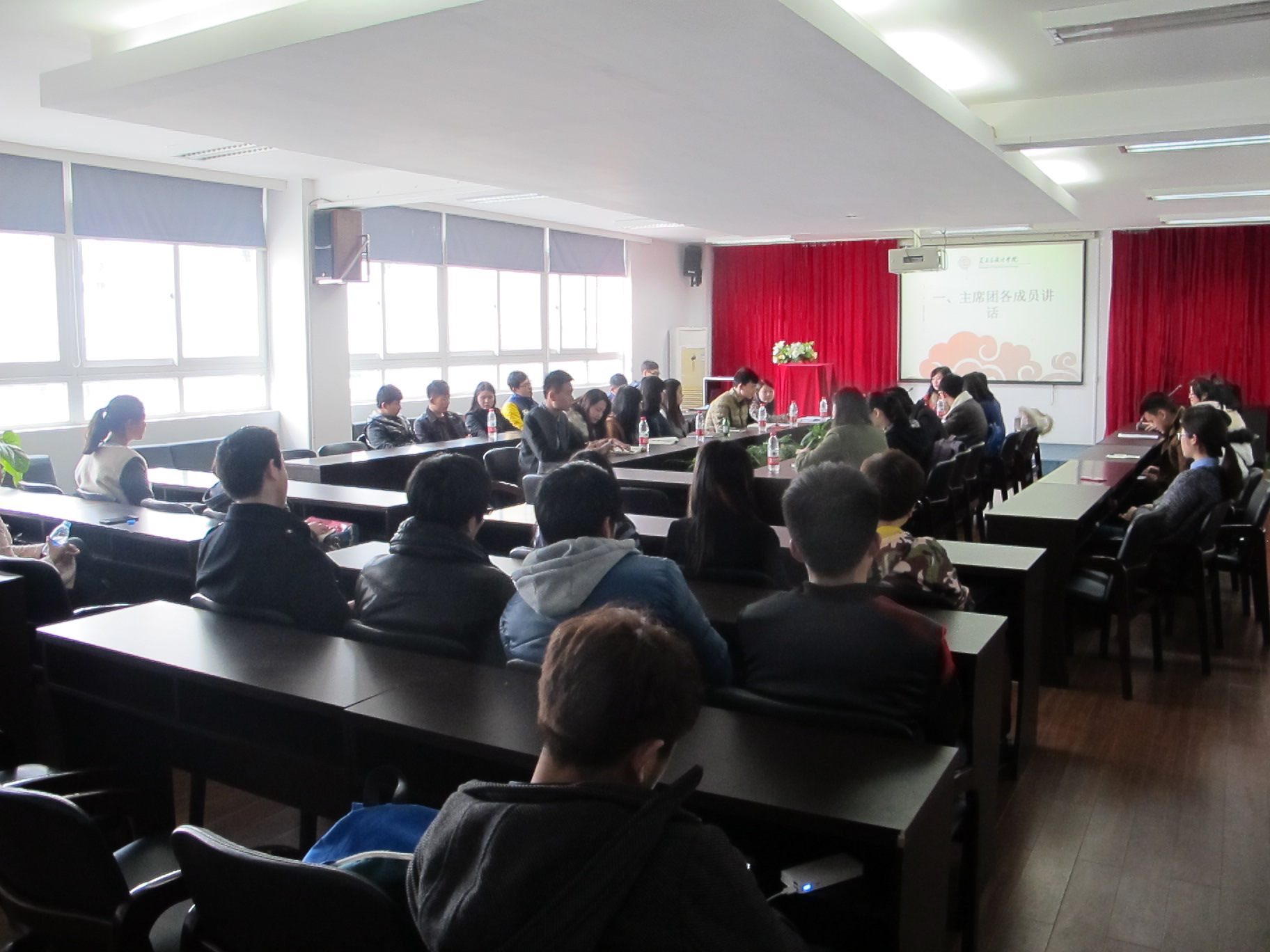 2月26日下午,在学院2B4001会议室召开了万象城awc8882013-2014学年第二学期团委学生会第一次全委会,学院党总支副书记杨振海,辅导员杜茜老师、陈赛慧老师,以及全体成员参加了本次会议。