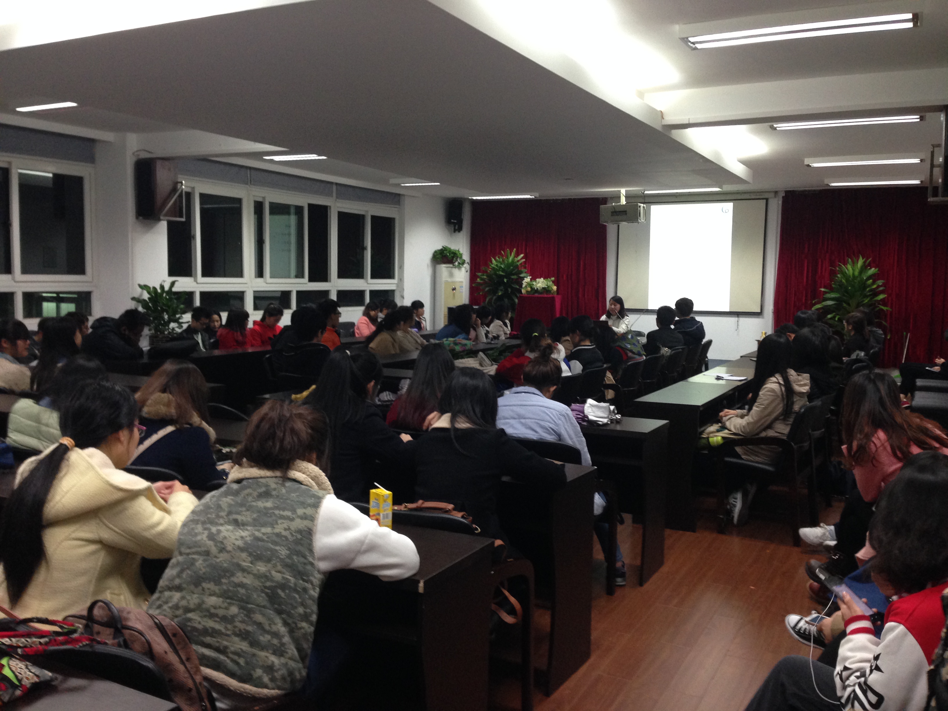 万象城AWC - (888中国)官方网站2014年暑期社会实践培训班第二课时讲座于3月20日晚上6点半在2B4001如期召开,大会由创业实践部韩青青同学主持,特邀嘉宾12级优秀队长吴荣婷参加了会议。