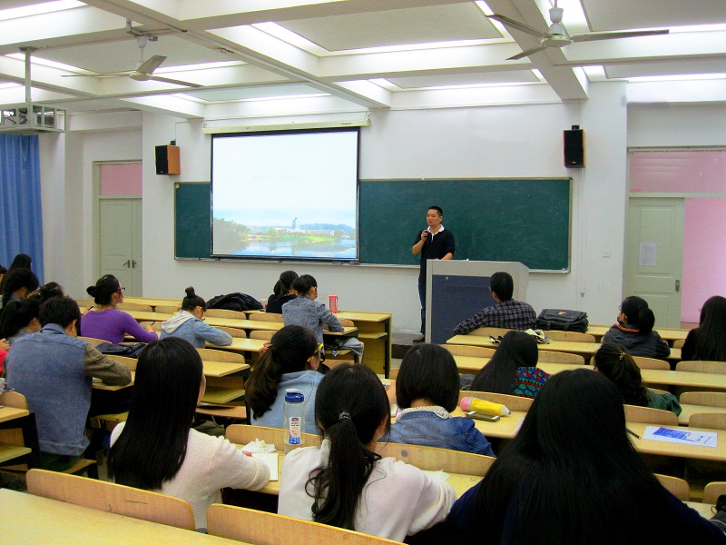 为树立在校美术师范专业学生的美术教育理想,10月30日下午三点,温州市高中美术教研大组组长邹黎明老师在3A-201为同学们做了《我的美术教育理想》专题讲座,主持此次讲座的是万象城研究生办公室主任胡建南老师。 讲座一开始,邹老师先与同学们分享了自己20多年的工作经历,谈到我国美术教育的现状,并借助丰子恺先生的漫画作品《村学校的音乐课》,对理想的艺术教育做了深入的阐释。最后,邹老师提出作为优秀的美术教师一定是心中有教材,且能在教学活动中将“懂-透-化”得以实践。 近2小时的讲座,使师范生对美术教育的理想得以明晰,为成为一名优秀的美术教师打下良好地基础。讲座取得了圆满的成功。