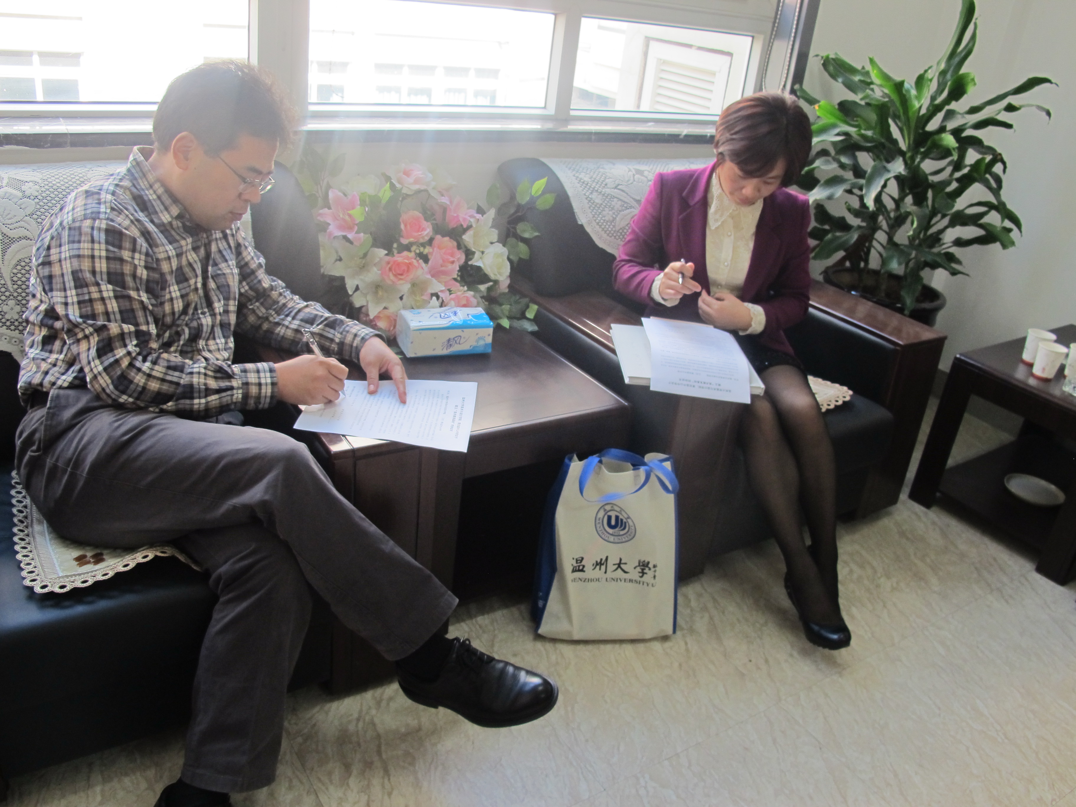2013年10月25日,青田中山中学校长严银红一行五人来万象城参观交流。院长李运河、党总支书记郑彩莲、副院长蔡可群等出席了座谈会。