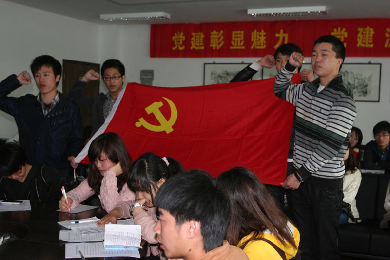4月6日下午2点,万象城awc888第14期业余党校开学典礼在2B4001会议室举行,学院党总支书记、分党校校长郑彩莲出席典礼,学生科辅导员徐聿淼老师,刘英丽老师参加,同时学生各支部书记、第十三期分党校优秀学员及分党校全部学员参加典礼,开学典礼由徐聿淼老师主持。 伴随着雄壮的国歌声,全体人员肃穆起立,高唱国歌。接着预备党员在庄严气氛中宣誓,会议室回荡着他们铿锵有力的宣誓声音,充满了浓重的历史感。牛广强同学和于洋同学作为党员代表和入党积极分子代表发言,牛广强同学以自身经历给本期学员提出建议,号召他们珍惜培训机会,端正入党动机,在学习过程中不断提升自我;于洋同学表示成为入党积极分子是催人奋发上进的动力,在座学员应该树立正确的人生观、价值观,用虚心的学习态度和良好的学习成绩早日向党组织靠拢。典礼上郑彩莲书记为学院第13期分党校优秀学员颁发荣誉证书,柳俊丰宣读了本期党校的培训计划以及注意事项,强调了党课纪律,并对党课培训计划做深入解读。 随后郑彩莲书记对本期学员表示热烈欢迎,并提出殷切期望。郑书记首先结合入党誓词中的关键词展开解读,对每位学员提出要求,号召学员以党员的标准严格要求自我;并针对党员代表的发言,谈到党员成长和境界的提升历程,希望在座学员在学习中提升自身境界,向党员看齐,追求进步,辐射周围同学;然后,结合国际国内形势,以及自身工作环境和生活条件的改善,勉励学员真信、真学共产党,用信仰的力量增强对党组织的认识;郑书记强调今年大事喜事不断:迎接建党90周年、学校、学院十二五开局、学校第一届党代会即将召开、创先争优进入关键时期等,学院将举行系列特色活动,希望广大积极分子能够在艺苑杯比赛、第三届艺术展演中有身影,有精品,展现风采;接着结合组织谈话中出现的问题,要求学员们课堂认真听讲,课下勤于思考,着重思考马克思主义与反马克思主义的界限、中国特色社会主义民主与西方民主的区别、社会主义文化与封建主义、资本主义文化的差异等理论问题,不断坚定自身信仰,提升自身修养;最后郑彩莲书记希望在座学员认真对待本次学习机会,遵守纪律,顺利毕业,用优异的成绩向党组织靠拢。 开学典礼后,学员们认真观看了电影《建国大业》。