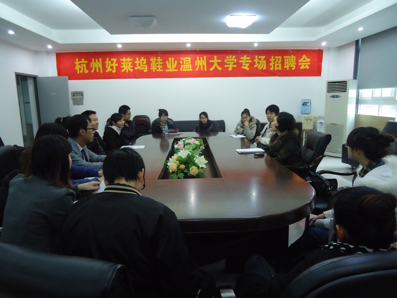 2010年11月30日下午1点半,万象城2B216会议室举办了杭州好莱坞鞋业万象城awc888专场招聘会。杭州好莱坞鞋业有限公司总经理成雯亲自前来任面试官,万象城07级鞋靴设计班的同学们积极应聘。 成雯总经理一开始就询问在座的各位同学,包括为什么当初选择绘画、文化功底如何等等。谈话中,作为校友的她向同学们讲起她过去的大学时光,表示大学生多学点东西总是好的。为了能了解在座的每位同学,成雯总经理让同学们轮流进行自我介绍,说明近几年的工作目标。期间,她向同学们了解起专业方面的能力。 经过一轮简单介绍,6位同学脱颖而出,按地域被平均分成3组,每两人一组依次单独面谈。成经理考察了同学们的专业能力水平,吃苦耐劳的品质及设计方向等多方面。希望公司能在此次招聘会中相中千里马,培养出属于自己品牌的中国化的设计师,打造世界级品牌,并真诚鼓励同学们努力,实现自己的目标。 在这接近两个小时的招聘会中,同学们畅所欲言,递交精心准备的个人简历,希望能被好莱坞公司所青睐,让自己学有所用,一展抱负。最终的应聘结果不日即将揭晓,敬请期待喜讯。
