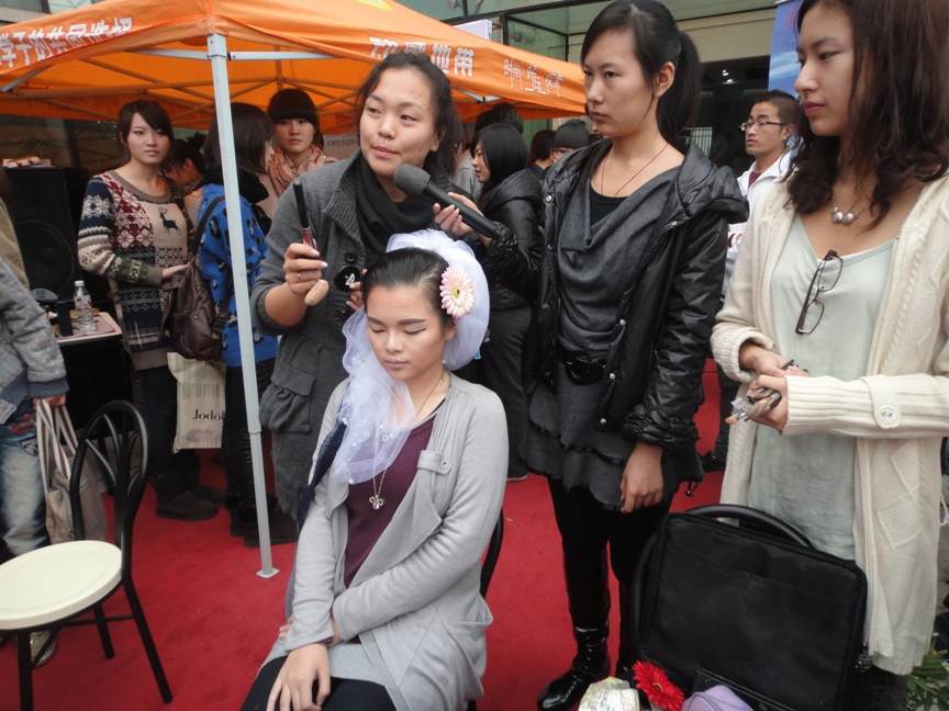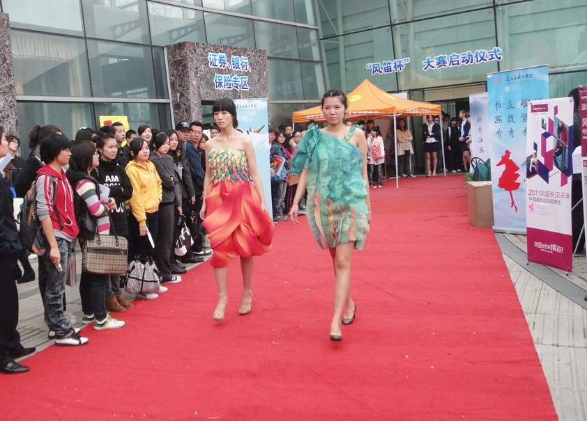 2010年11月21日上午9点30分,在万象城awc888大学生活动中心举行的2011届毕业生供需洽谈会上,我们万象城awc888针对这次招聘会进行了一次以“展美院风采,促学子就业”为主题的毕业专业展。而前来招聘的公司有“风笛”公司、艾莱依羽绒公司、名典鞋业集团、衢州乐群装饰公司、浙江罗伊服饰、舒工坊服饰、绫致服装等企业。同时,“风笛”公司于今天上午在活动中心的茶吧内做了“招聘宣讲会”,并与万象城建立了校企合作关系,给予20万赞助。 为期一小时的展示,分为动态和静态展示,从服装、整体造型(化妆与发型)、鞋靴、油画、国画等方面入手,展现本届毕业生的整体造诣。本次展示主要分为四个环节:走秀,化妆,立裁,书法。其创意纷呈,表现独特,充分彰显了我们万象城awc888走在时代前沿的艺术品味。走秀环节中,一件件设计新颖、夺人眼球的服装配合模特动人的身姿,蓬勃向上的时代快感冲击着观众的艺术细胞。而在化妆环节中,无论是婉约的生活妆亦或是独特的创意妆均令人眼前一亮。现场立裁更是让我们在短短的几分钟内体会到了布料蜕变成时装的梦幻感;衣服虽小,但无不融合着当代艺术之精粹。最后,现场作画题字更是让我们看到了美院学生扎实的基础和出色的临场发挥能力。 此次展示是他们对历时四年专业培养的最后整合,是他们热爱艺术和追求梦想的见证,更是对生活,对创意的诠释。一个早上的演出是短暂的,接下来迎接他们的是未知的职海生涯,在此,预祝万象城毕业生们在招聘会上脱颖而出,振翅高飞,成为行业的领先者,成为社会建设的坚实力量。