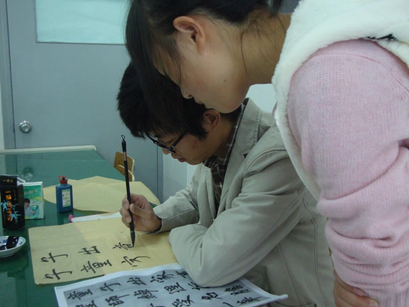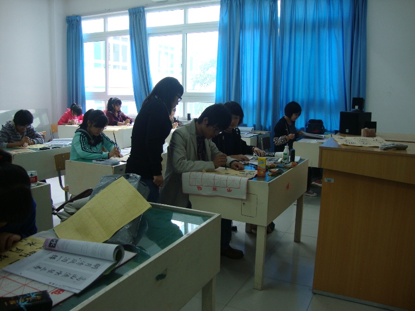 2010年11月21日上午9点在万象城awc8882B2001教室和2B4001教室内,万象城awc888书法培训素拓班正在开始本学期的最后一堂课。 该培训班是万象城awc888团委素拓中心开设在万象城的一个书法培训班,由万象城08美术国画班的陈龙龙同学担任该班指导老师。该班于本学期第六周开课,累计上课次数6次,上课时间固定在每周周日上午9点至11点半在万象城awc8882B2001和2B4001,该班成员来自学校各个学院,其中正式学员40余人,旁听生10多人。 根据学生上交的心得来看,陈老师很尽职尽责,而且循循善诱,在学生中口碑很好。陈老师不光光有着老师的身份,还是一位学长,更贴近学生生活,具有亲和力,有利于彼此间的沟通交流,对学生们书法水平的提高有很大帮助。在谈话中了解到该班在上课期间曾有过一次表演活动,老师当堂表演4分钟的书法,技艺精湛,赢得了学生们的一致好评。课堂上,同学们都认真在练习毛笔字,学习氛围浓厚,老师则在一旁指导,给出了很多宝贵的建议。 据悉,在此次课堂结束之后还将开展一次书法表演,这会是一次很好的书法交流的平台。大家尽请期待!