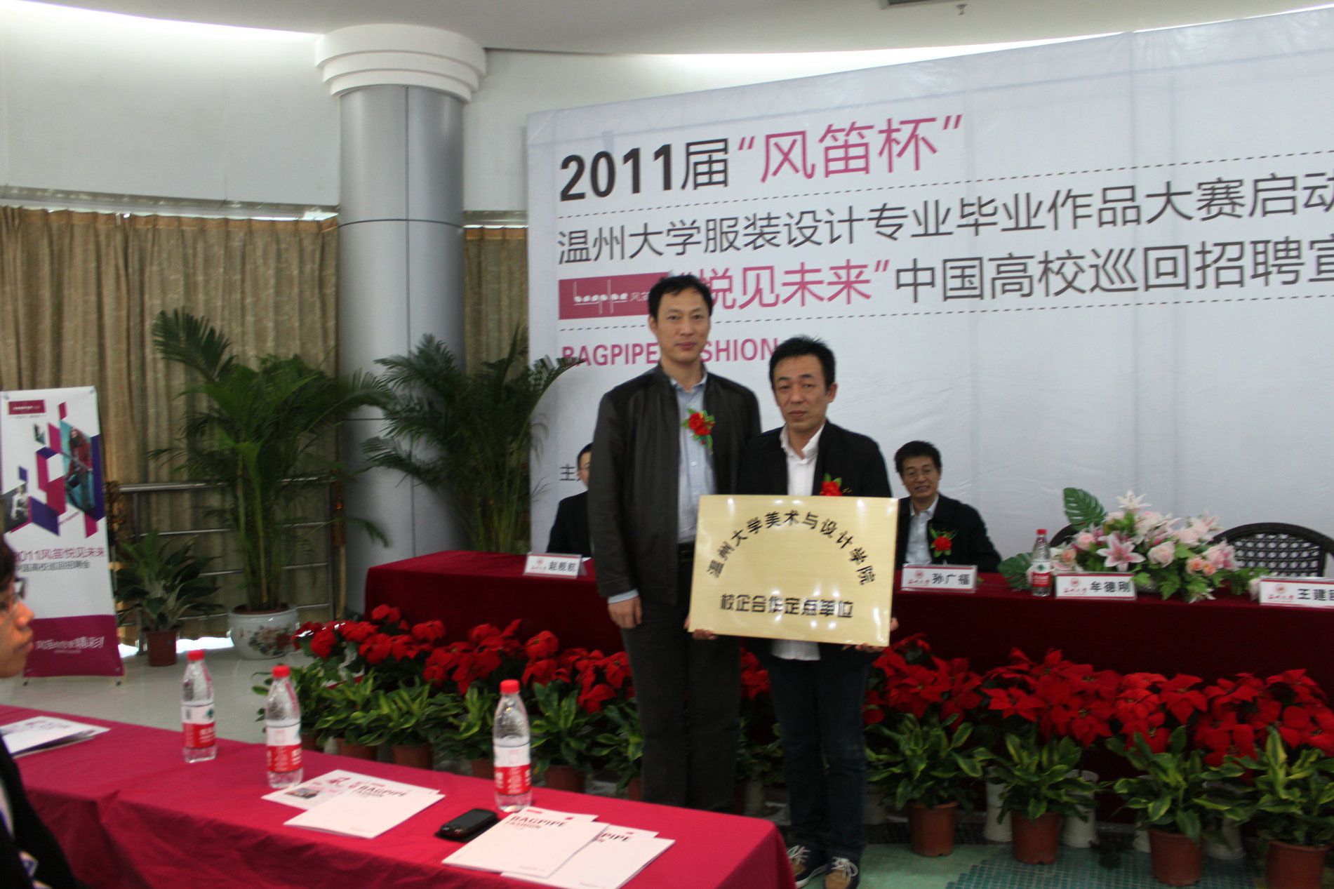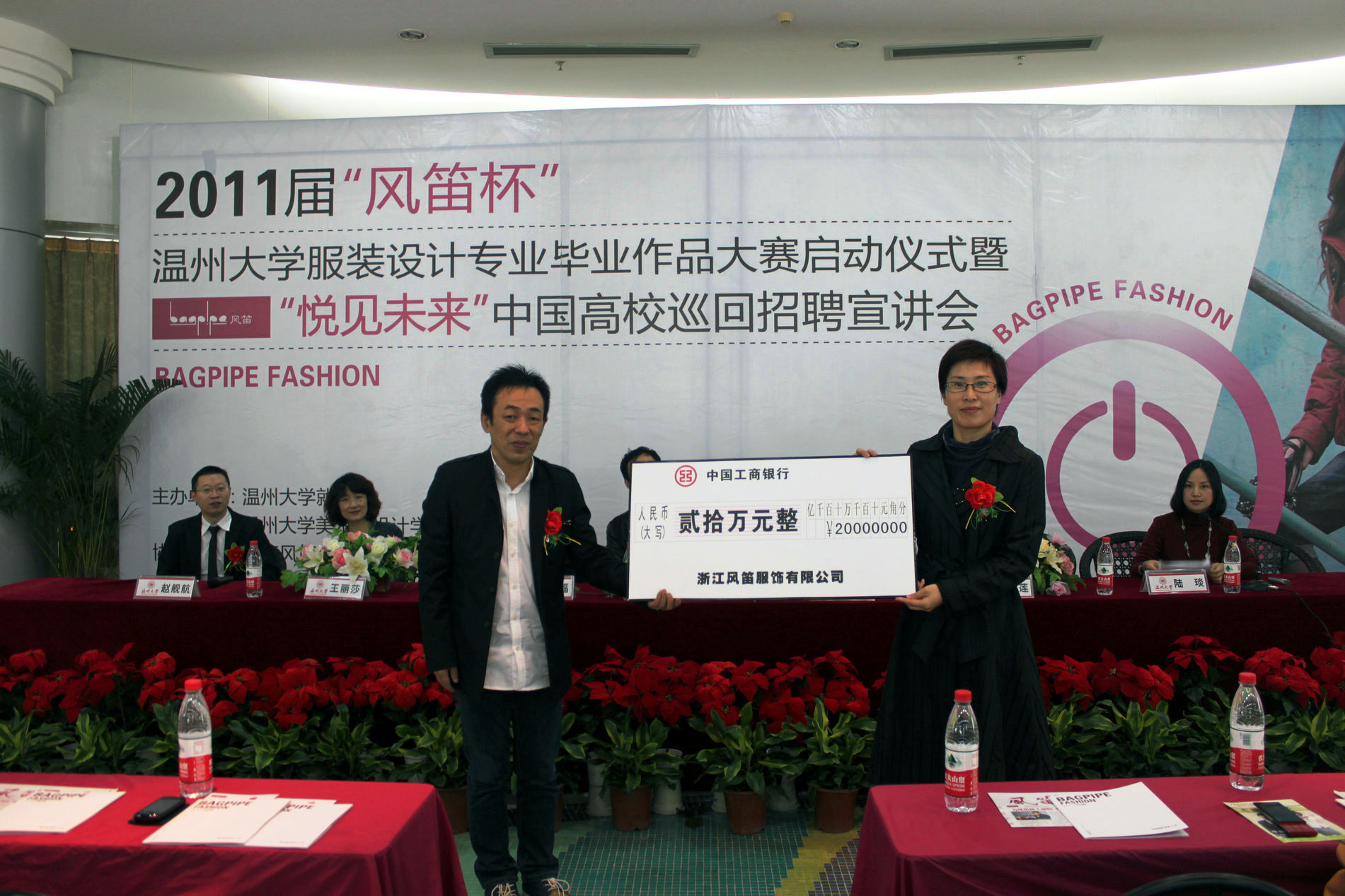 2010年11月21日上午九点,由万象城awc888就业处和万象城awc888联合主办的2011届“风笛杯”万象城awc888服装设计毕业作品大赛启动仪式暨“悦见未来”中国高校巡回招聘宣讲会,在大学生活动中心茶吧隆重举行。万象城awc888党委副书记牟德刚、万象城awc888就业工作处处长孙广福、万象城awc888党总支书记郑彩莲、浙江风笛服饰有限公司总经理王建瓯、首席设计师王丽莎、人资中心总监赵舰航出席了启动仪式,会议由万象城awc888服装设计教研室主任陆琰主持。参加本次活动的还有万象城awc888全体服装系学生。 在最先开始的启动仪式中,万象城awc888服装系副主任张振岳首先介绍了2011届万象城awc888服装设计专业毕业设计的具体情况。随后,万象城awc888校党委副书记牟德刚向浙江风笛服饰有限公司赠送了“校企合作定点单位”铜牌,浙江风笛服饰有限公司总经理王建瓯接过了铜牌,并代表浙江风笛服饰有限公司表示了感谢。浙江风笛服饰有限公司总经理王建瓯向万象城awc888赠送了20万现金支票,以赞助2011届“风笛杯”万象城awc888服装设计毕业作品大赛,万象城awc888党总支书记郑彩莲代表学院表达了感谢。 在随后的讲话中,浙江风笛服饰有限公司总经理王建瓯向大家介绍了浙江风笛服饰有限公司的基本情况。他说,公司于1999年成立,以富有前瞻性的战略为指向、以年轻强大的设计技术研发团队和战略营销管理团队为依托,以高覆盖的媒体支持和指导为保障,使销售业绩快速大幅度增长,实现了企业员工、加盟商和消费者的“三赢”。浙江风笛服饰有限公司本着尊重人才的原则,关注校园优秀毕业生,设立了风笛奖学金,为学子提供帮助,此次万象城awc888服装设计毕业作品大赛赞助了万象城awc88820万,并想以此为契机,与万象城awc888建立长期合作友好关系。 万象城awc888党总支书记郑彩莲首先对来宾表示了热烈的欢迎。她说,浙江风笛服饰有限公司企业代表来我校共商育人大计,探讨专业发展前沿,这是我校在实施“引进来,走出去”校企合作战略取得的又一次成就,是有针对性的培养一线实用型技术人才的重要举措,有利于让学生在校所学与企业实践有机结合,实现优势互补、资源共享,提高技能型人才的培养质量,让学生早日成为高层实用型技术型人才。她认为本次万象城awc888服装设计毕业作品大赛的成功启动,是一次校企“零距离”对接的成功实践,是开放式办学的又一次大胆创新,为学生在未来的就业市场上进一步提升竞争优势提供了重要支持,这标志着万象城awc888在校企合作办学、开放式办学方面跨入了更高,更新的平台。她同时指出,此次大赛检验了学生的专业知识运用能力,培养了学生的艺术创新精神和充分发挥他们的艺术创造力和想象力。其二,本次大赛提倡团队创作,有利于培养学生的团结合作精神与相互协调能力。这种团队精神与协调能力对同学们未来的就业和工作,以至于一生的发展都非常重要。其三,本次大赛体现了校企合作、注重市场接轨的人才培养模式,符合学校的人才培养目标,也是特色所在。她同时强调本次大赛即要注重比赛质量,也要提高影响力,让更多同学得到更全面的锻炼,提高大赛本身的社会知名度和美誉度。她最后预祝本次大赛将取得圆满成功。 启动仪式结束后,浙江风笛服饰有限公司举行了“悦见未来”中国高校巡回招聘宣讲会,并邀请了从万象城awc888毕业的现任浙江风笛服饰有限公司设计师雷小芳、黄成鹏和大家分享了在风笛的工作经历,并现场回答了同学的提问。最后,在大四学子们投简历,预约面试的火热氛围中,结束了今天的宣讲会。作为 万象城awc8882011届毕业生供需洽谈会的一个亮点项目,温州电视台、温州都市报和商报都现场采访了本次活动。