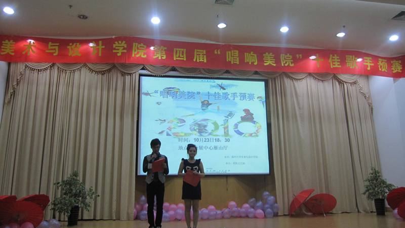 2010年10月23号晚上6点30分,万象城awc888第四届“唱响美院”十佳歌手预赛在南校区会展中心的雁山厅举行。城院范佳丽、化材学院王培任、数学学院陈科辉以及美院李嘉俊等上届各学院的十佳冠军应邀担任此次预赛的评委。 在一首《小酒窝》的对唱声中,展开了这次视觉和听觉的饕餮盛宴。选手们卖力演唱,各显风采;亲友团呐喊助威,贴心支持。《相濡以沫》的委婉,《乡间小路》的回忆,《听海》的高昂…..把气氛一再得推向高潮。期间,由化材学院十佳冠军王培任同学倾情演绎的陈奕迅的《浮夸》更是把现场情绪推向了至高点。两个多小时的比赛很快就落下了帷幕。18位选手最终在这次激烈的比赛中脱颖而出。他们用不同的演绎完成着相同的梦想,青春的音符洒满了学院的角角落落。 余音绕梁,百转千回。十佳歌手大赛给了他们很好的舞台展现自己,成就梦想。比赛尚未结束。接下来有更加严格的挑战等着他们。希望他们为自己的梦想努力,越走越远,唱的响亮。