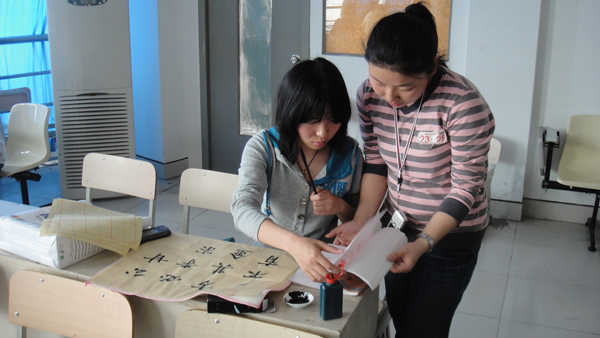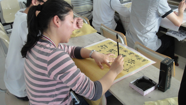 近日,万象城awc888主办的每周一课书法培训素质拓展班与往常一样在万象城教学楼2B308准时开课。万象城07级优秀学生何玲珑同学担任执教,为来自全校各院学员40余名书法爱好者拉开书法世界的大门。 从开班至今,何玲珑同学细致的讲解早已赢得学员们的一致欢迎与肯定。且何玲珑同学亲切和煦的语言更在授课时无形中拉近了老师与学员的距离。墨香阵阵,老师与学员之间诸多互动,交流热切,一派和谐的氛围。书法培训不仅让众多同学学到了书法的技法,更是在练习过程中修身养性,感悟中华精粹的深远魅力。不少学员作为首次零距离接触书法的初级学者,在经过几周的潜心训练,通过大量的书法练习,完成了由量变到质变的过程,不少优秀作品已脱颖而出,喜获丰收。 书法作为中国的国粹,其历史之渊源,内容之精深,无不值得我们进行深入挖掘。作为当代大学生,作为炎黄子孙,我们有义务有权利将之传承于今后,传播于世界,愿更多的人重视书法这一国粹,珍惜书法这一中国瑰宝。