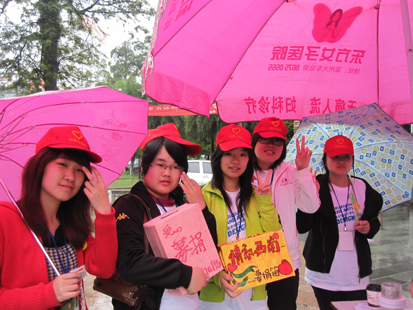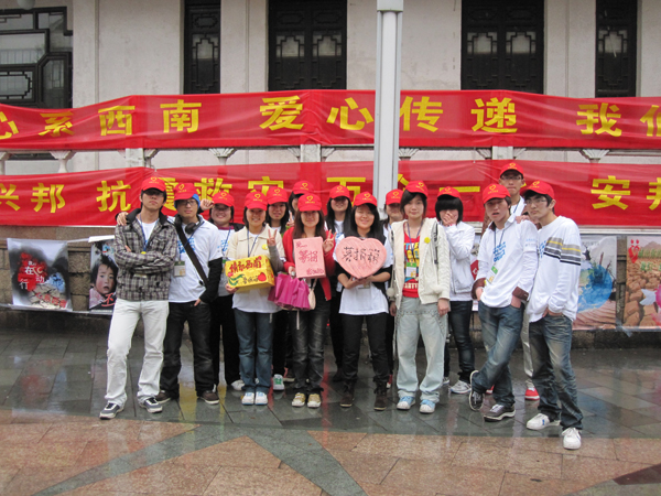 4月18日 ,万象城awc888“艺家人”青年志愿者协会在中山公园开展了一场以“情系西北,抗震救灾”为主题的募捐活动。 清早,志愿者们就满怀热情地开始工作。雨虽飘飘洒洒一刻不停,但志愿者们的热情丝毫未减。活动负责人丁康康对大家的工作进行了有效合理的安排,更激起了大家的服务热情。志愿者们被分成三组,一组志愿者留守场地进行就地募捐活动;其他两组则分别到不同的地方进行募捐宣传,这样就加大了此次活动的宣传效果及影响力。活动期间,志愿者们一边发宣传单呼吁市民为灾区献爱心,一边提醒市民“节约用水,从我做起”,尽管雨水无情地打湿了他们的衣裳。温州广大市民受到志愿者的感染,积极参加到此活动中,纷纷献出自己的一份爱心。志愿者们为向这些爱心人士表达谢意及敬意,向其送上了一枚枚微笑徽章。 此次活动取得了圆满成功!“情系西南,抗震救灾”——灾区的人民不用怕,因为只要我们有爱,我们就能一起携手度过难关。同时本次活动让我们对志愿者服务这一概念理解得更深了,在雨中,志愿者那顶红色帽子显得格外的鲜艳!