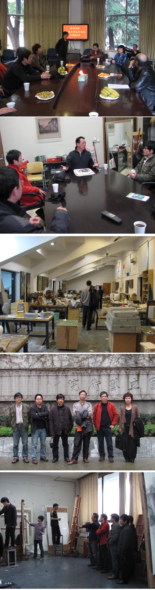 3月30日至4月2日,正值春暖花开时节。美术系蔡可群、蔡瑞蓉、邓国祥、黄良、梁力宏、黄良珽、丁海涵等七位教师,北上进行了为期四天的教学交流考察。 3月30日,第一站先到金华,作客浙江师范大学美术学院。浙师大美院教学骨干及教学副院长等人热情接待,双方进行了长达两小时的教学与办学思路交流,参观学院国画临摹室、展厅、专业教室。 3月31日早上,拜访中国美术学院油画系。由油画系主任杨参军教授带领,参观美术学院历史悠久,在国内颇负声望的四大油画工作室。杨教授绘声绘色地介绍自己的教学方法与艺术思想,令大家深感受益匪浅。 是日下午,七人又马不停蹄地前往考察杭州师范大学美术学院。校方早已开启喷泉,安排人员进行接待。管建新副院长、陆琦教授、学院书记等人在会议厅热情接待。由孔耘教授讲解,观看摄制精美的纪实录像,全面介绍杭师大美术学院的专业建设与前景规划,令人耳目一新。其办学思路是,突出绘画的品牌效应,加以设计专业的拓展,形成鲜明的办学特色。市政府与校方对美术专业的特色办学予以大力支持,学院得天时、地利、人和之势,近年发展迅速。随后,参观学院美术馆,该美术馆为杭州市的标志性建筑,设施完备,气势不凡。 4月1日早上,考察位于中国美术学院象山校区的壁画系,参观了漆艺与湿壁画工作室,特色工作室效应显著,在读的多名学生入选五年一届的全国美展。下午,拜访位于凤山路艺术创库区的杨参军绘画工作室,大家惊讶于杨教授创作的勤奋,教学相长的师者风范。 4月2日,春风和煦。满载观感与心得,七人自驾车子,越过钱江大桥,回到瓯江之畔的万象城awc888。