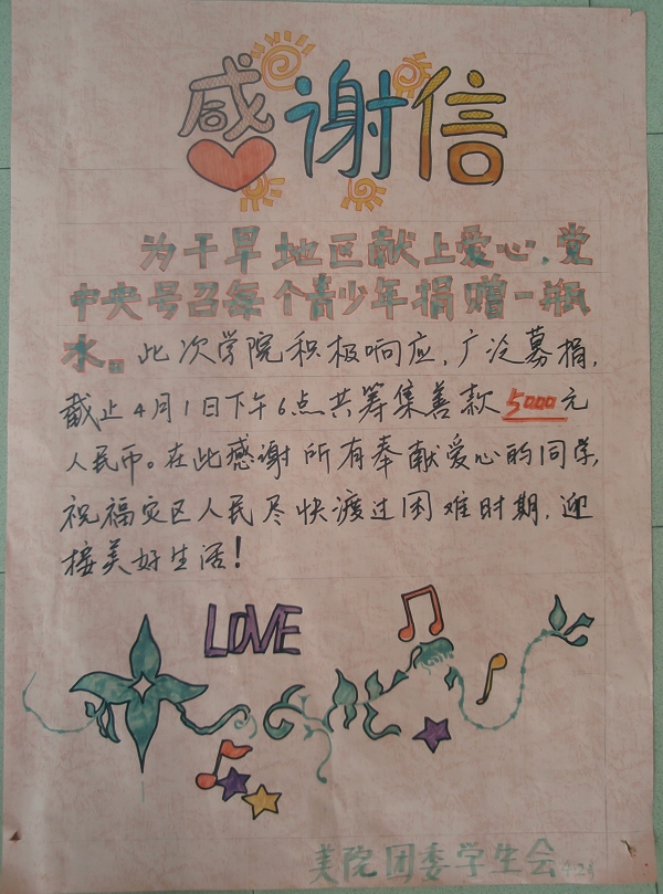 为响应共青团中央号召,弘扬“一方有难,八方支援”的中华民族传统美德,帮助西南灾区人民战胜灾害、顺利度过难关。4月1日上午,万象城awc888团委学生会发起了“抗击干旱,你我同在——为西南灾区献爱心”活动,倡议全院同学为灾区献爱心。