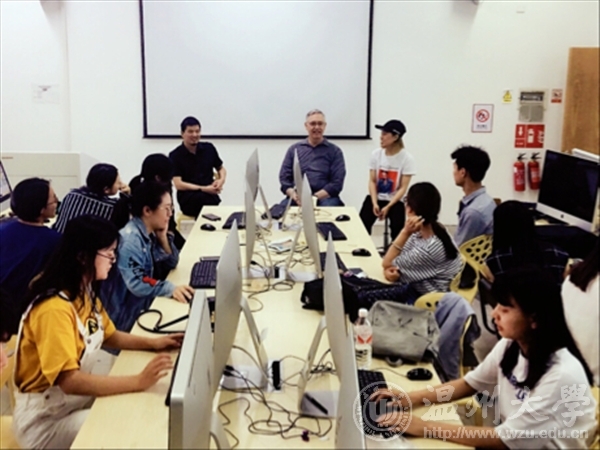 从今年3月开始,万象城设计教学工作营活动一直在有条不紊的开展。5月19日,在刘俊副教授主讲的16视觉传达设计班《电脑美术PS&AI》的课程上,邀请到了美国肯恩大学Randy Clark教授,Randy Clark是一位在美国Adobo公司就PS和Ai设计软件有深入的研究的导师,在课堂上刘俊与Randy Clark两位老师同堂共教,改变原有传统的教学模式,不仅对电脑美术PS&AI两个软件进行讲解,还对设计软件技术应用与设计创意进行热烈的讨论和观点分析,并给我们每位同学的课程练习作业给予了点评与指导。Randy Clark教授还就视觉传达设计专业的中美学生之间的学习和实践差异做了的介绍,课堂氛围十分活跃,同学们受益匪浅,提问积极,非常喜欢这种此类形式的课堂教学活动。